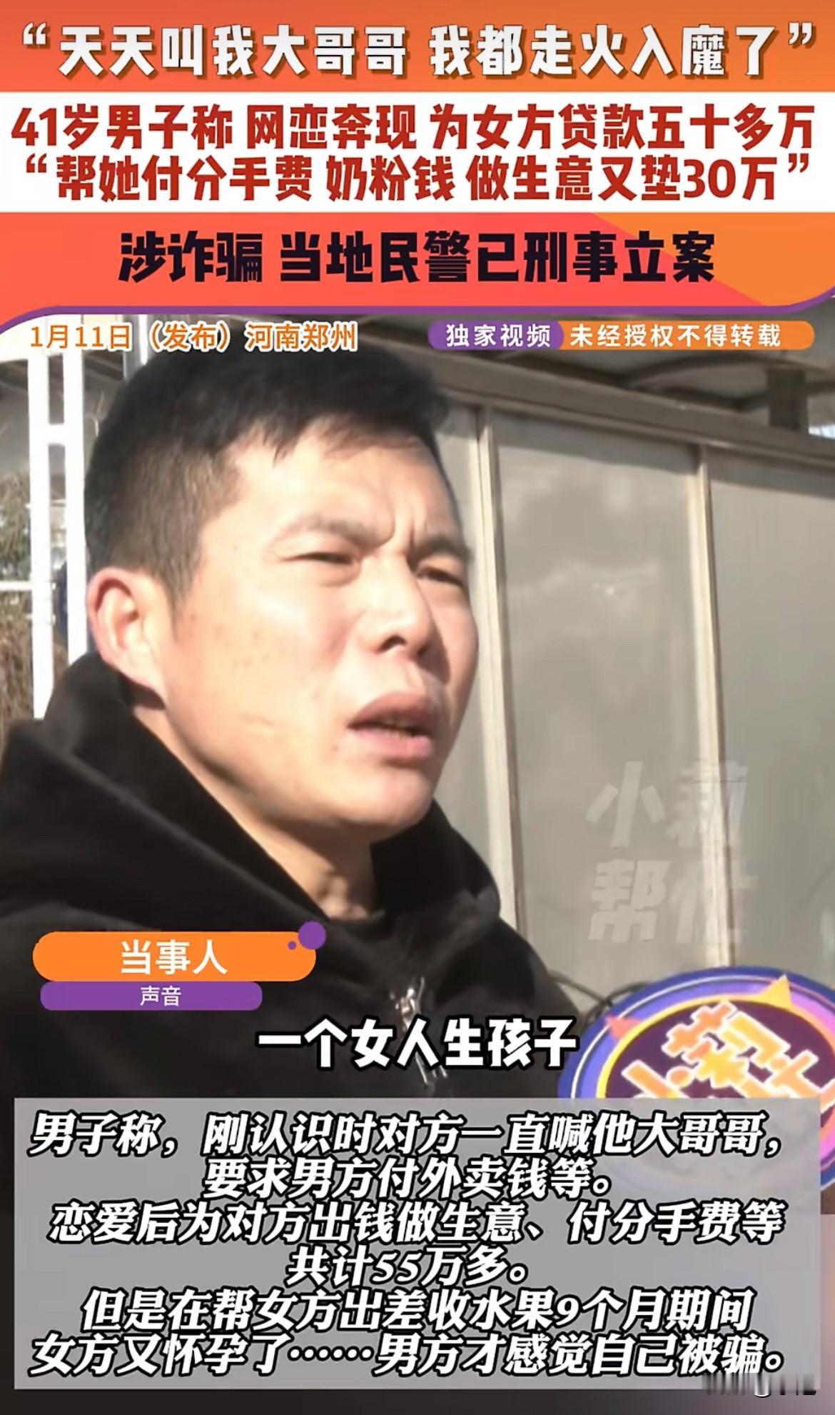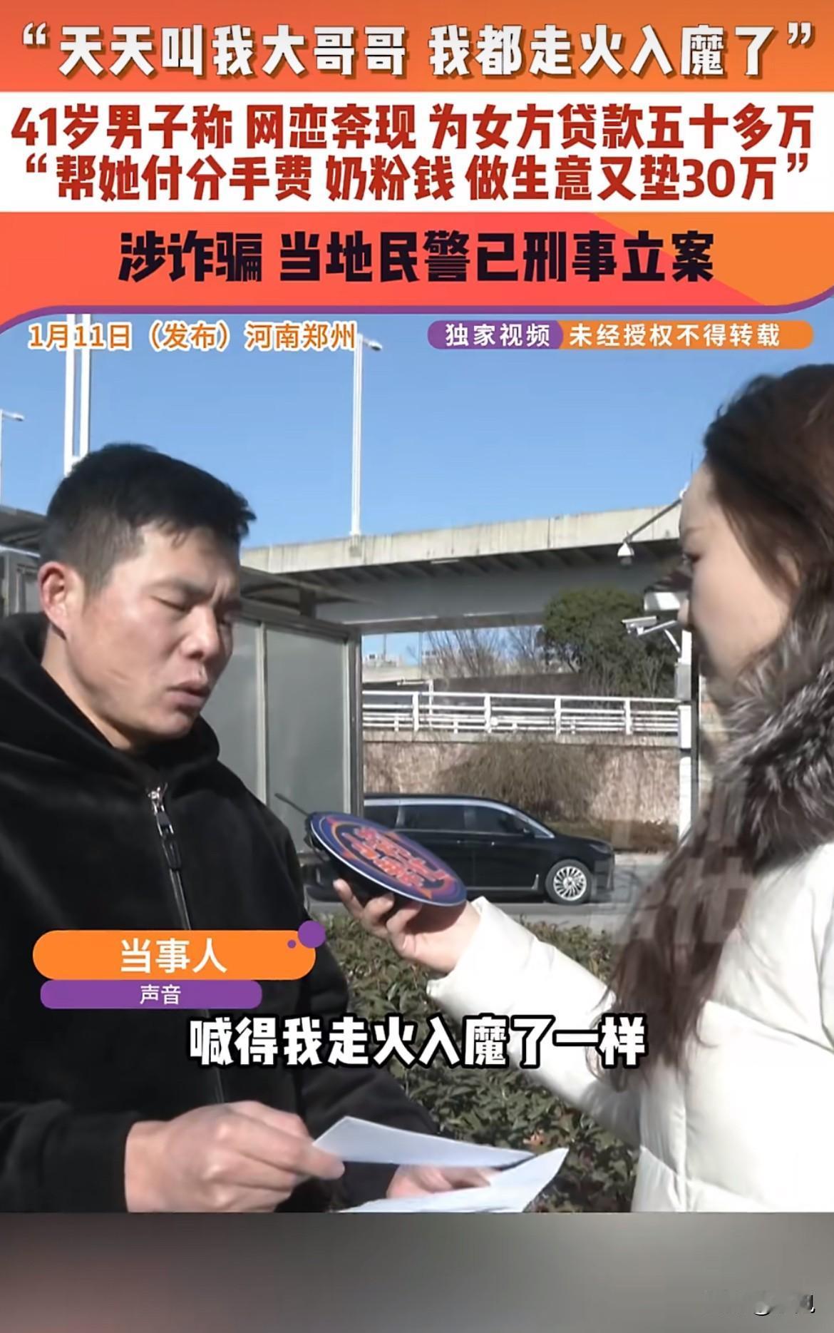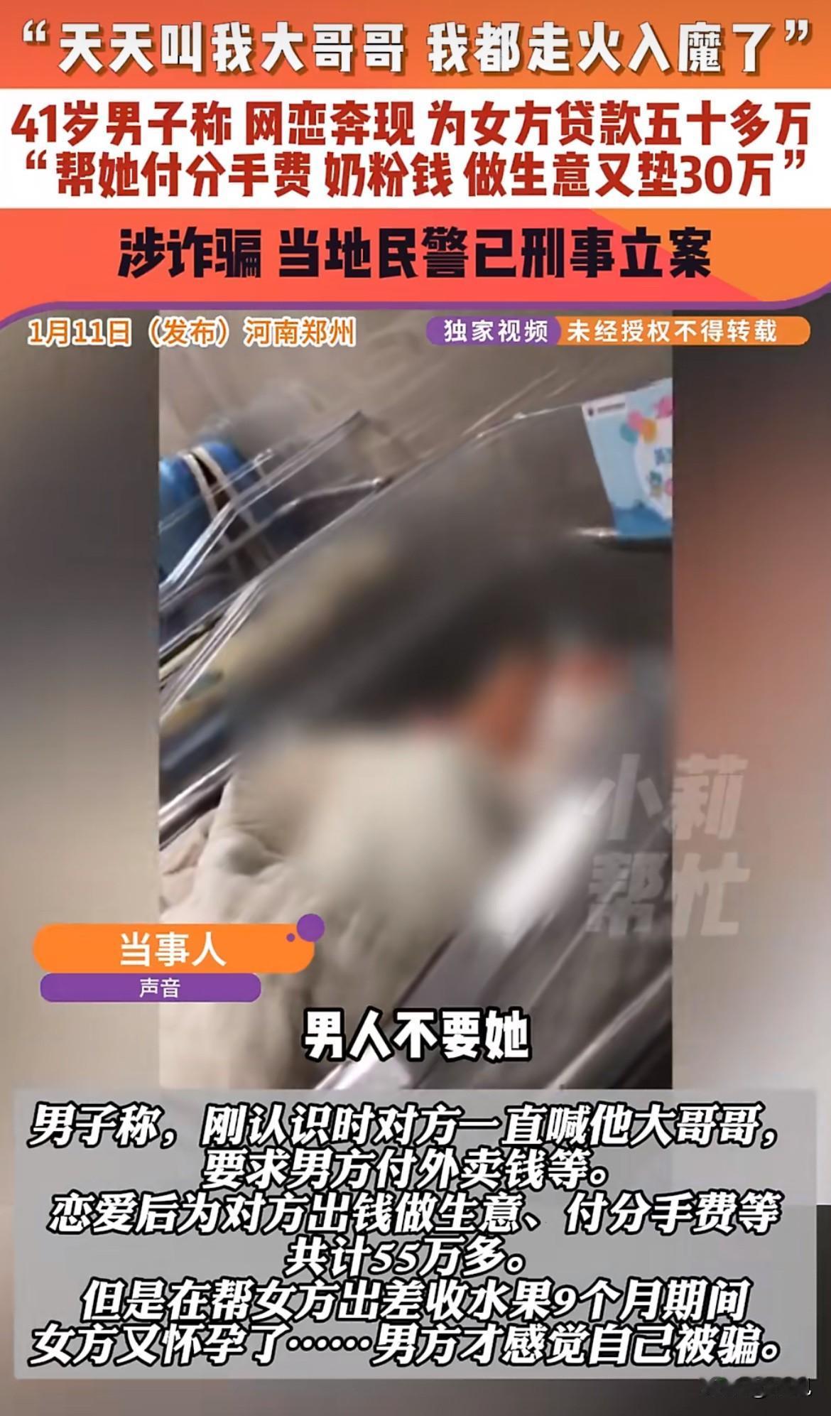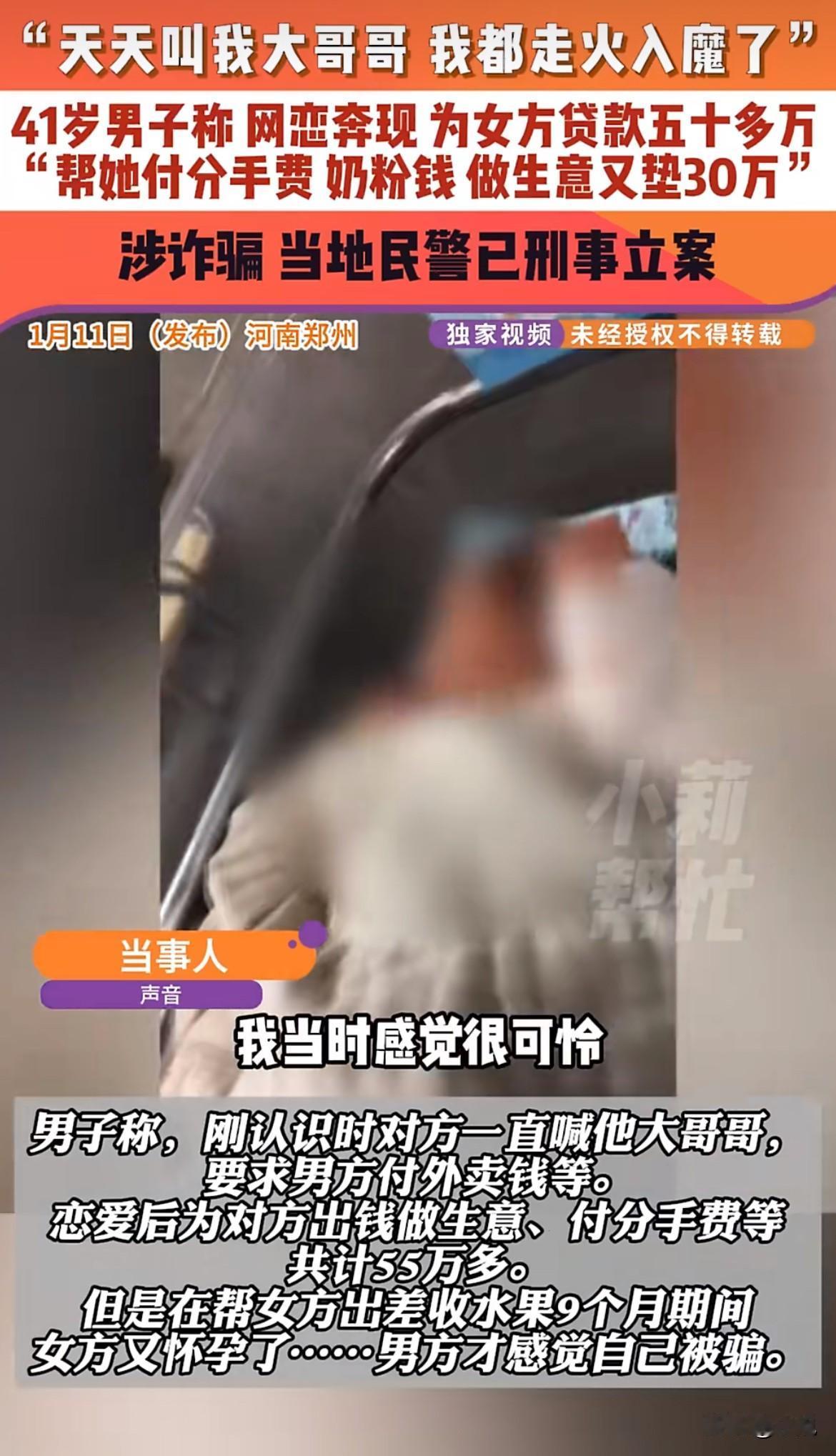 一声“大哥哥,我吃不上饭了,能借我500吗?”内蒙古的郑先生,这辈子都没想到,这句话会像一把钥匙,打开了他积蓄和贷款的大门,最后卷走了他55万多。 借钱这件事,有第一次,就有无数次。500块钱饭钱刚转过去没多久,新的理由就来了。这回是“刚生完孩子,没钱出院”。紧接着,孩子的“奶粉尿不湿”要1万,请“保姆”要钱,外面“欠了别人3万”要还,甚至“前男友索要5万分手费”也需要他来垫付。这些请求,都包裹在一声声甜得发腻的“大哥哥”里,让郑先生难以招架。 事情到这里,已经够离谱了,但远远没到高潮。这位“女友”开始描绘起更宏伟的蓝图——创业。开奶茶店、开水果店,需要“加盟费”和“装修费”。一笔30万的巨款,又被郑先生掏了出来。他可能觉得,这是为了两个人未来的共同投资。 最狠的一招来了。“女友”让他去新疆帮忙“收水果”。这一去,就是整整九个月。我们无从知道这九个月里,郑先生是如何在异地他乡辛苦劳作,又是怀着怎样的期待。我们只知道,当他干完活回来,满心以为能推进关系时,一个晴天霹雳等着他:他的“女友”,又怀孕了。 孩子显然不是他的。直到这一刻,郑先生才彻底从“大哥哥”的迷魂汤里惊醒过来,意识到对方“满嘴跑火车,没有一句实话”。他选择了报警。警方立案了,认定涉嫌合同诈骗。在民警的见证下,女方也白纸黑字写下了55.3万元的欠条。 可是,写欠条有什么用?几个月过去了,他一分钱也没拿回来。那张欠条,像极了这场荒唐恋爱的结局,轻飘飘的,没有半点分量。 回过头看,这场骗局粗糙得几乎处处是漏洞。从头到尾,他们只见过一面。所有的关系推进、情感升温、经济求助,全都发生在手机屏幕上。这不只是郑先生一个人的悲剧。就在最近,济南一位张先生,被自己的“表妹”用几乎一模一样的手法,一人分饰两角骗走了50多万。合肥的包先生,网恋的“白富美”女友,真实身份是个沉迷赌博的四旬男子。本溪的刘某,被冒充好友的表妹骗走52万余元。 这些案例冰冷地揭示了一个规律:在这场被称作“杀猪盘”的游戏里,感情是提前写好的剧本,温柔是精心设计的诱饵。对方关心的从来不是你这个人,而是你口袋里还有多少钱可以“榨取”。从假装吃饭困难,到编造家人生病,再到描绘共同创业的虚假蓝图,话术层出不穷,核心只有一条:要钱。 更值得深思的是,这类诈骗早已不是单打独斗。警方破获的案件显示,它背后可能是集团化、组织化的运作。有团伙以网络公司为掩护,把诈骗做成了“专业”。就在上个月,北京高院刚发布了一批典型案例,婚恋“杀猪盘”赫然在列,法院的判决展现了从严惩处的决心。 郑先生的55万,恐怕很难追回来了。他失去的不仅仅是钱,还有对人与人之间信任的信心。他最后悔的,是那句:“交朋友不管是男人女人一定要谨慎,不要轻易去给人家转钱。” 这个道理,他用了55万和一场心碎才真正明白。 故事讲完了,但类似的故事每天都在换着主角上演。屏幕那头的声音和照片可以伪造,但让你不断掏钱的行为,永远是真的警报。