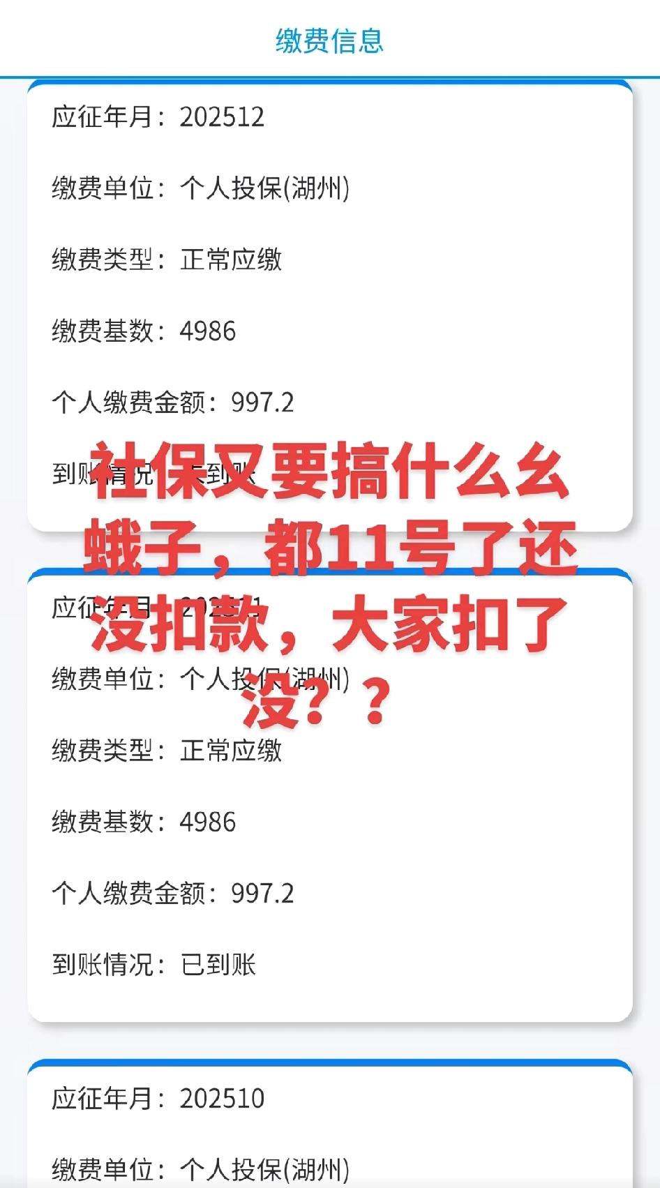 社保的的确确还没扣费,是不是他们良心发现了,打算给我们免一个月啊? 还去银行问了怎么没扣,以为银行卡出问题了。刚刚进支付宝缴费了……觉得奇怪这个月怎么自己不扣。现在抖音打开就刷到这个。好奇怪。自己手动缴了,总感觉欠钱。