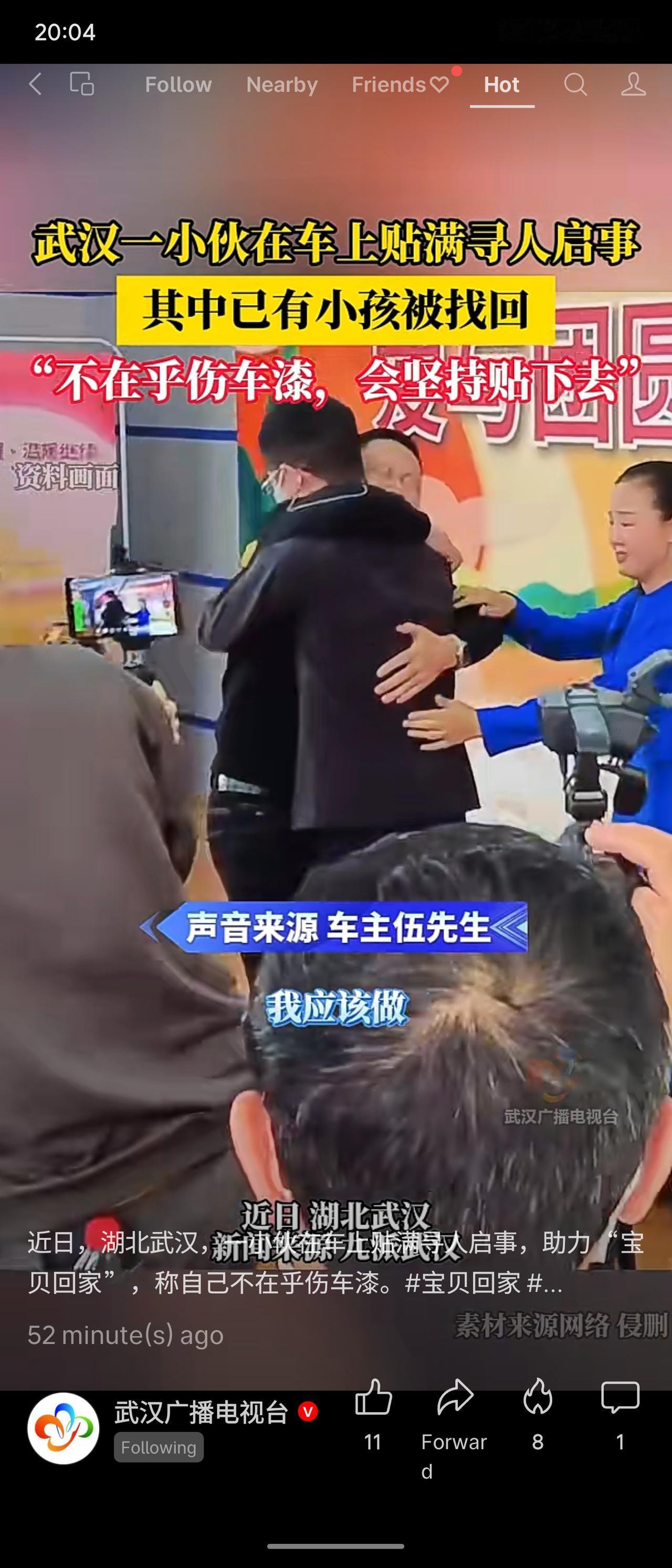 武汉小伙伍先生坚持在私家车上贴满“宝贝回家”寻人启事,助力寻找失踪儿童。他表示不在乎此举损伤车漆,并已有小孩因此被成功找回,体现了普通人的公益坚守与社会温情。