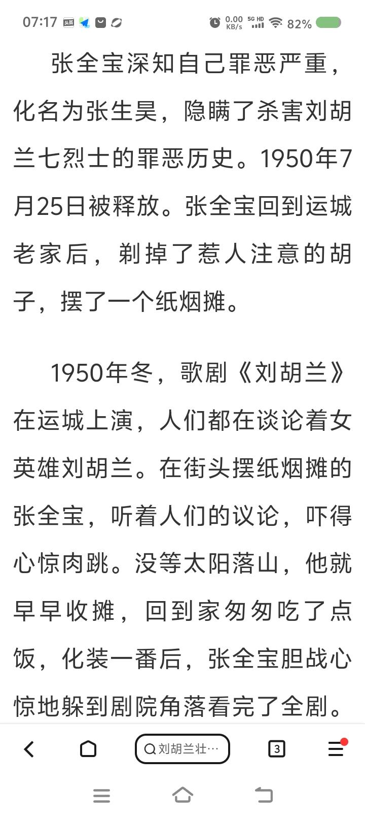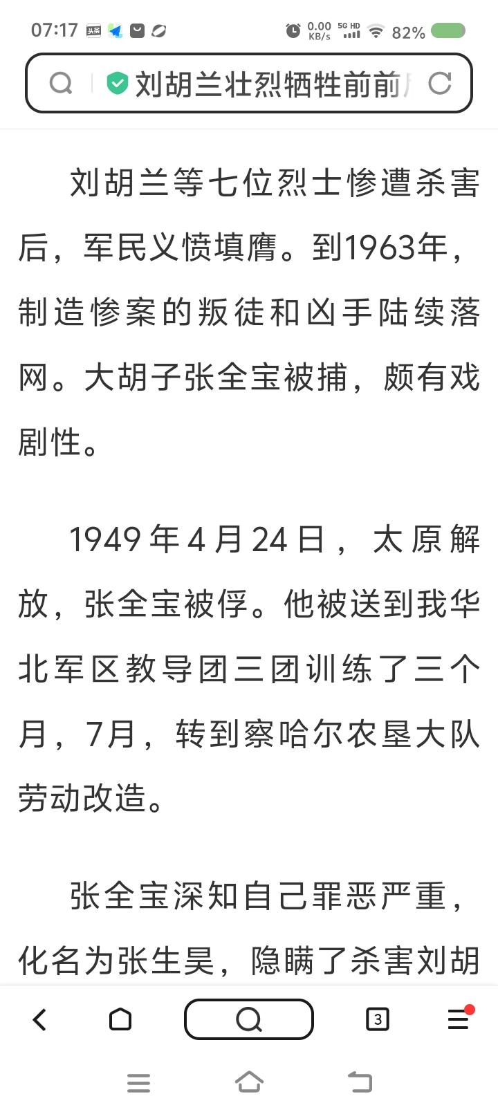 逮捕杀害刘胡兰等烈士的凶手—— 据报道,杀害刘胡兰等七烈士的叫张全宝。解放后,为躲避追捕,他化名张生昊做起了小生意。1950年,歌剧《刘胡兰》在山西运城上演。张全宝去观看,看完长舒一口气,剧中的刽子手叫许连长,他以为又能躲过一劫。很快,公安机关将其抓捕。 学习笔记: 出卖刘胡兰的叛徒叫石五则,1963年2月14日被处决。 杀害刘胡兰等七位烈士的国民党军官叫张全宝。1949年太原解放时被俘。他隐瞒了罪恶历史。劳改后释放,回到运城。后经举报,被捕。 张全宝是那场军事行动和屠杀共产党员及革命群众的指挥官,死有余辜。