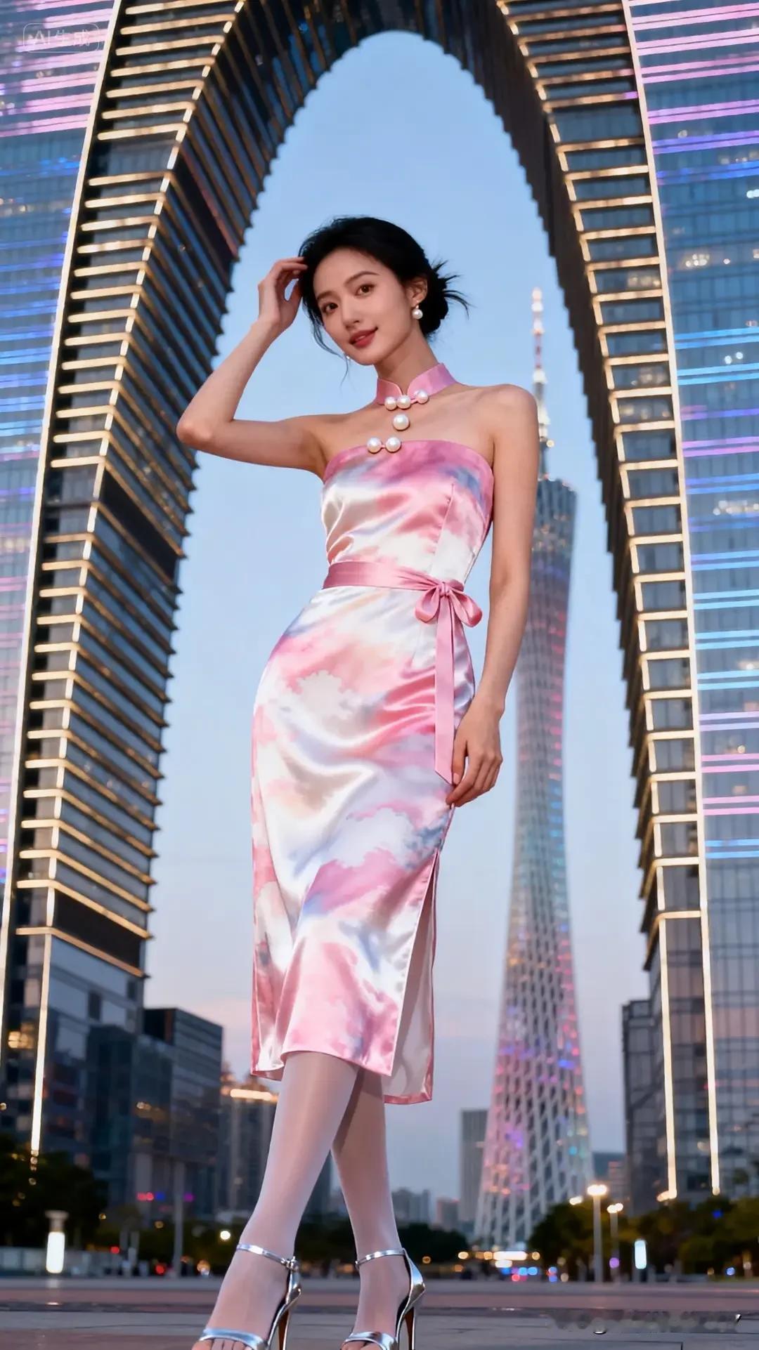 在广州塔下,穿上梦幻粉裙,那感觉就像掉进了都市浪漫与时尚的漩涡。粉缎回纹绣裙,粉白渐变的缎面泛着奢雅光泽,像被霓虹镀亮的绸帛,明艳吸睛。回纹刺绣藏着国风意趣,抹胸设计又添都市性感。 当霓虹晕染广州塔轮廓,裙装与城景交叠,仿佛从都市霓虹画里走出的国潮仕女。如今广州塔的国潮玩法超多,“云端国潮季”能高空看夜景、领刺绣徽章。还有设计师把建筑元素用到裙子上,网友用AI玩出虚拟诗意。在这,传统与现代完美融合,穿上粉裙来打卡,绝对能感受满满都市国潮魅力!