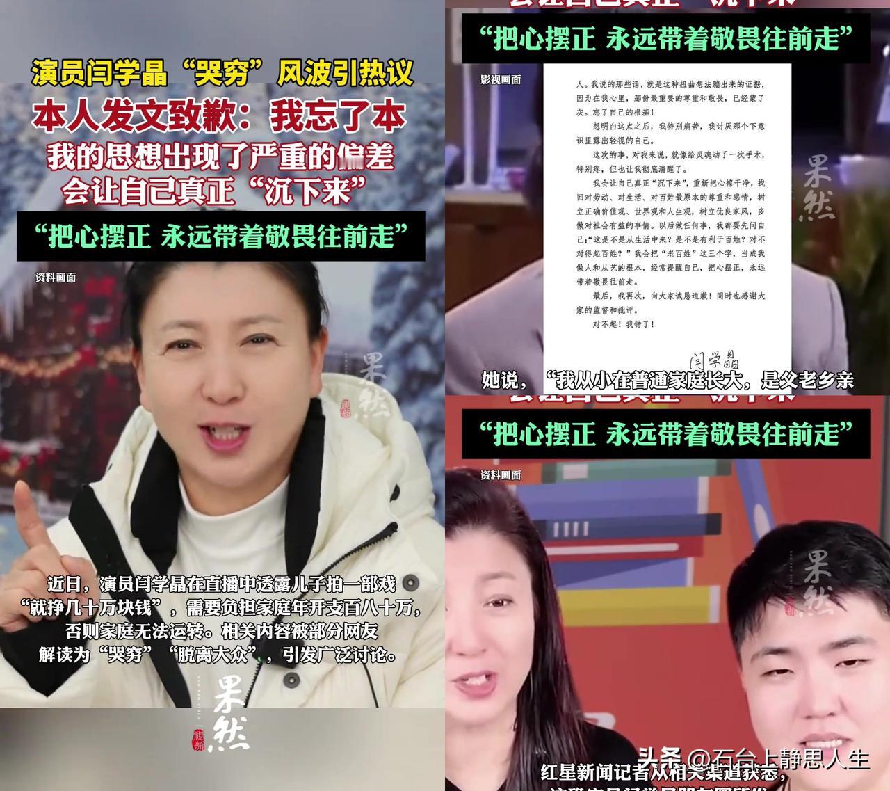 闫学晶哭着说忘本,可大家为啥清一色说她是怕了? 她在朋友圈写得老真诚了,说自己被掌声捧着忘了根,把百姓当成模糊的词,灵魂动手术疼得要命。 可大家没买账,全在说破她的小心思:“哪里是知错,分明是怕了!”怕啥?怕儿子那档子新疆班的事被深扒,怕直播带货的饭碗砸了。 新疆班是啥?是给边疆孩子的机会窗啊!就像你早起排俩小时队买包子,突然有人插进来拿走最后一个,哪是包子贵的事,是规矩被破了! 咱普通人拼尽全力考学,最怕有人用关系截胡!破的不只是名额,更是努力有用的信仰! 她嘴里的忘本,哪里是忘了穷日子,分明是把观众的喜欢当成了优越感!你吃的饭是观众给的,儿子的学凭啥不靠真本事? 有人说她终于清醒了,也有人说她演得比小品还像,道歉里没提儿子的事,没解释新疆班的矛盾,这灵魂手术是不是太表面? 你觉得她是真心悔过,还是怕了查账?咱普通人的公平,容不得含糊!
