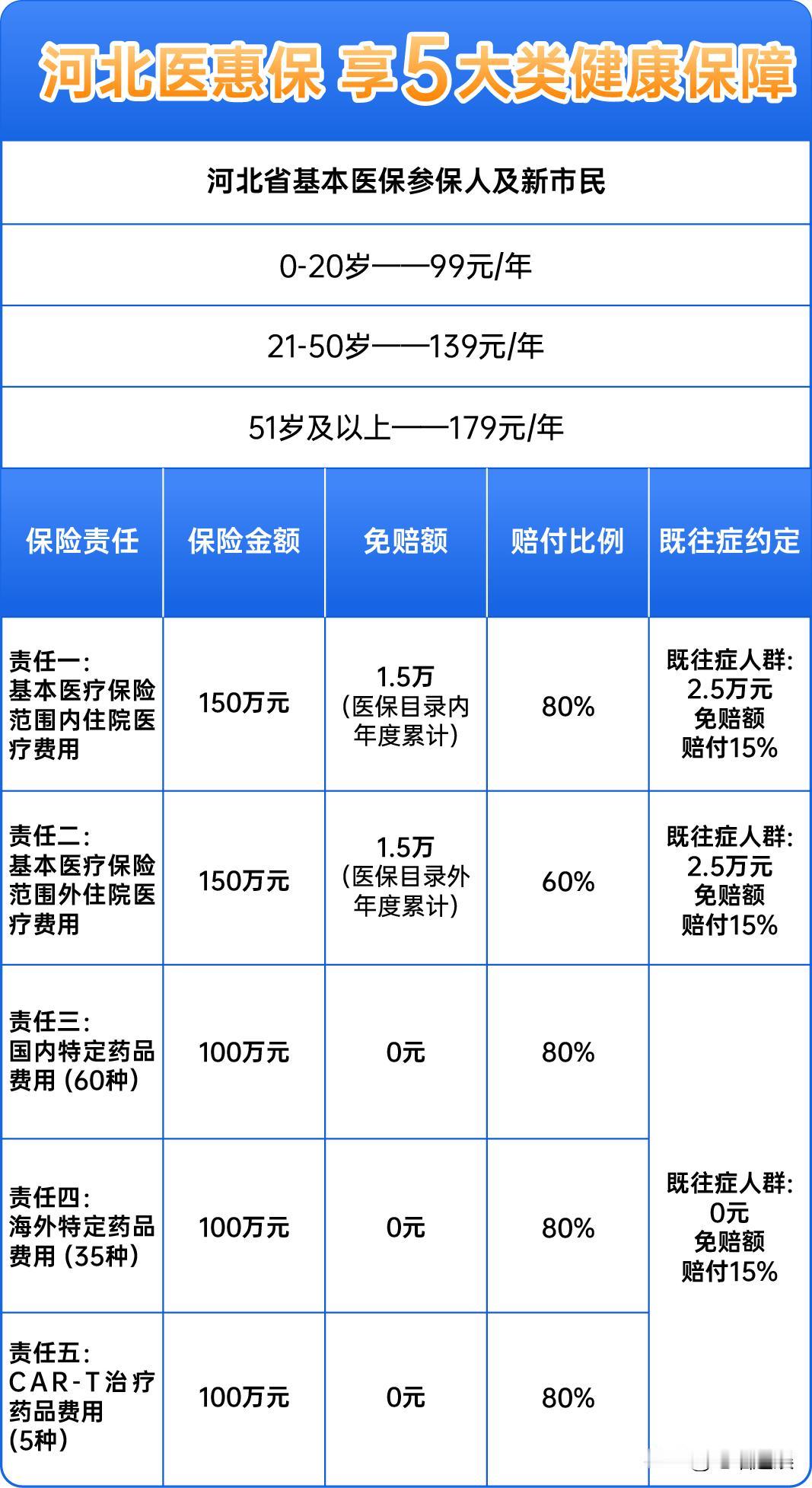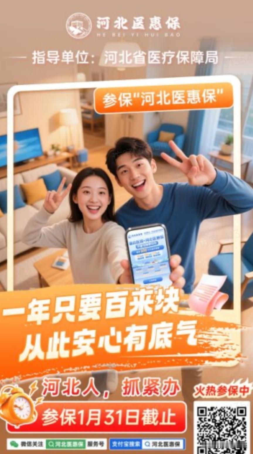 虽然人们生活水平越来越好,但中国已经进入深度老龄化国家。统计数据显示:到2024年,60岁以上的人口有3.1亿之多。所以,养老成了许多家庭的大问题。 元旦节,@宅喵追娱 河北的朋友小秦就在朋友圈晒喜讯。他的老母亲终于出院了!这个大孝子再也不用单位医院两头跑了。 最令人欣慰的是,他之前给母亲投保了“河北医惠保”。许多基础医保报销不了的特殊药进口药,也能报销不少。既减少了经济压力,又方便快捷。 河北医惠保不限年龄,不限疾病,分年龄段式投保花费不多。最少一年99元,最多才179。 全年最高600万保额,还有5大保障责任。 这个保险跟普通的城市居民保险不冲突,相当于又加了一道补充险。双险齐力呵护家庭,再不会有一家子因病致贫的窘迫。 而且,就算有些中老年人有基础病的,也不影响投保。 朋友说,他邻居同事听说有这么好的事,全家都投了。 有人还编了顺口溜,特别有趣: 上有老,下有小,建议买个医惠保。 万一病了不得了,拖累家里老和小。 社保医疗虽然好,自费进口报不了。 累计保障600万,大额医疗来报销。 如果你只有社保,抓紧购买医惠保! 总而言之,啥都没有不能没有钱,啥都没有别有病。许多本来条件不错的家庭,突如其来一场大病,见过太多因病致贫的了! 未雨绸缪为时不晚,河北的亲们,2026年开始了,抓紧时间吧。