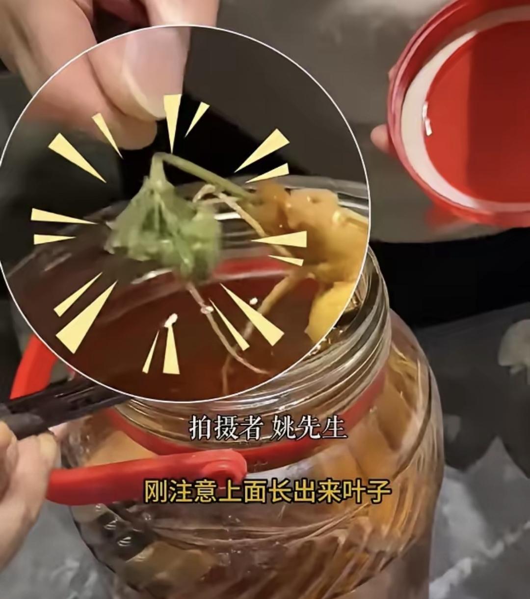 上海的姚先生翻出一瓶泡了三年的药酒,发现里面的人参居然长出了绿叶。这事儿他也没想到,用的是50度的散装白酒,本来是想补身子,结果喝的时候发现鹿鞭味特别冲,人参味反而没多少。 有人说是人参生命力太强,根上带着芽点,在密封条件不严的情况下,酒精挥发后浓度下降,就给了它发芽的机会。吉林、烟台之前也出现过类似情况,泡了十多年的人参照样发芽。 专家说,这种情况虽然少见,但只要密封不好,酒精度不够高,或环境温湿合适,植物细胞还活着,就有可能激活生长。但发芽后的酒不建议喝,容易有细菌滋生,酒体也可能变质。 网上有人说这是“成精”,也有人打趣说终于证明不是塑料人参。可再神奇,也不能拿身体冒险。