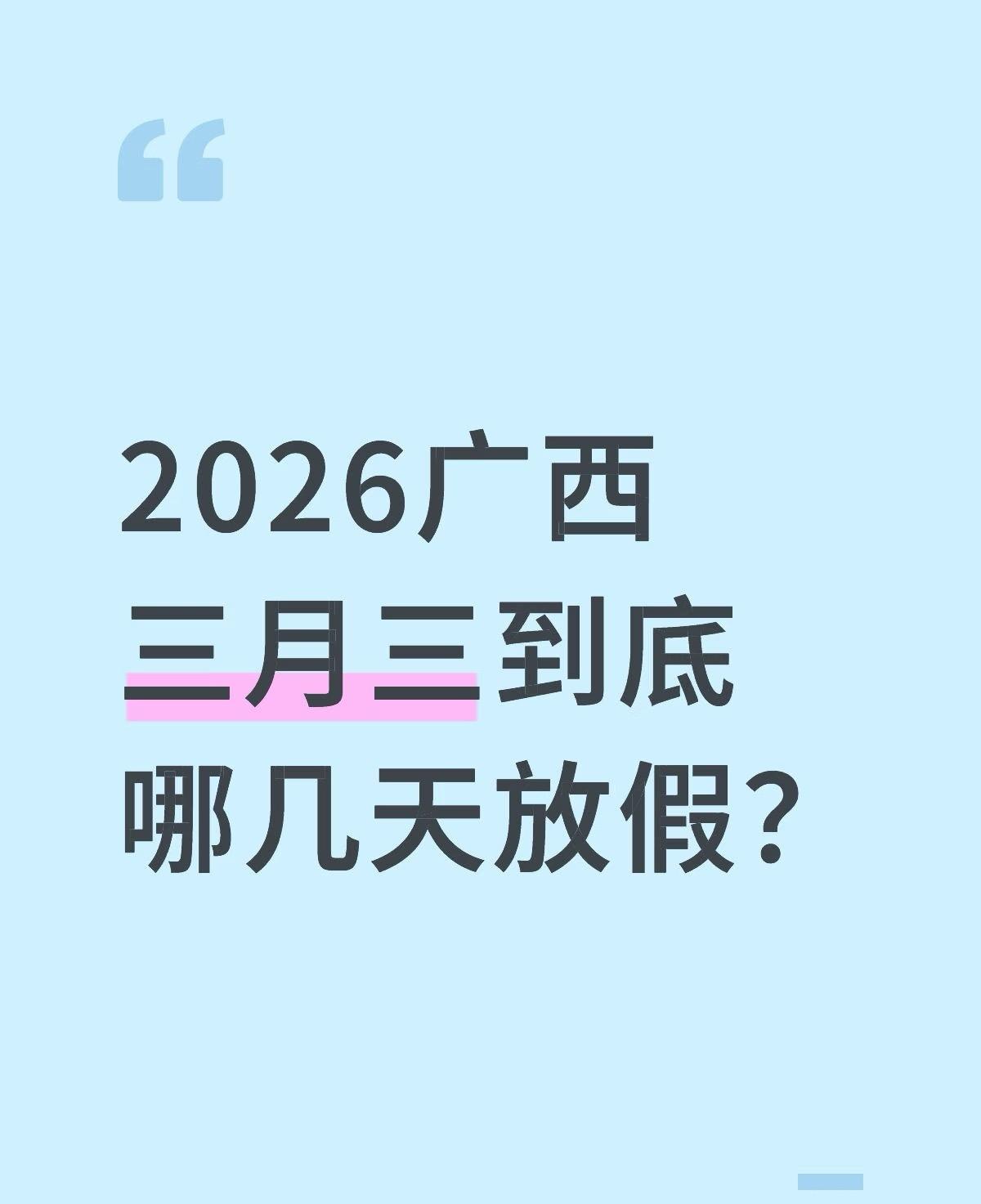 2026广西三月三到底哪几天放假?想请公休出去耍耍的,感觉大概率是17-19三天,但是因为初三在周日如果大方补一天就是17-20 ,去年初三在周一 放的是29-1。