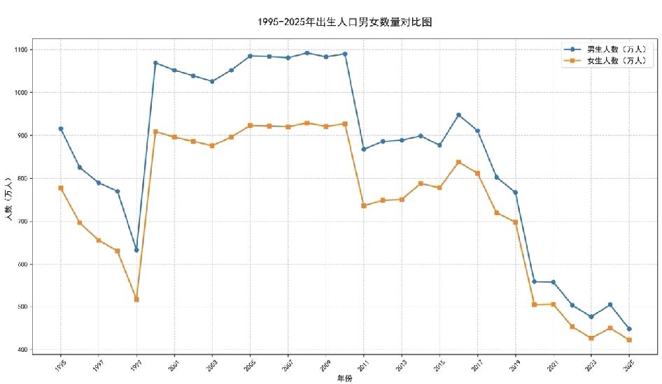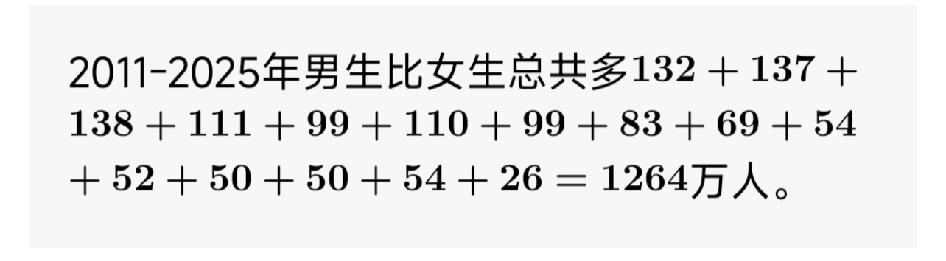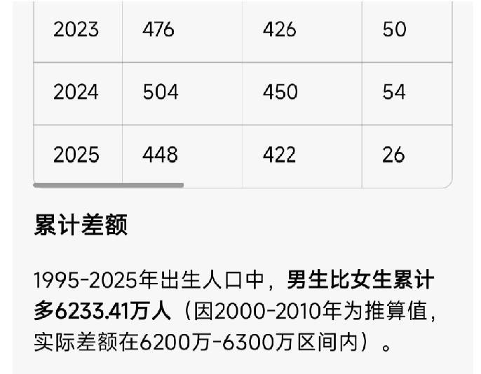 突然发现一个男女比例的真相! 1995-2025年出生人口中,男生比女生累计多得多呀 四舍五入的话,35岁以下男性数量要比女性数量差这么多,我天呐。