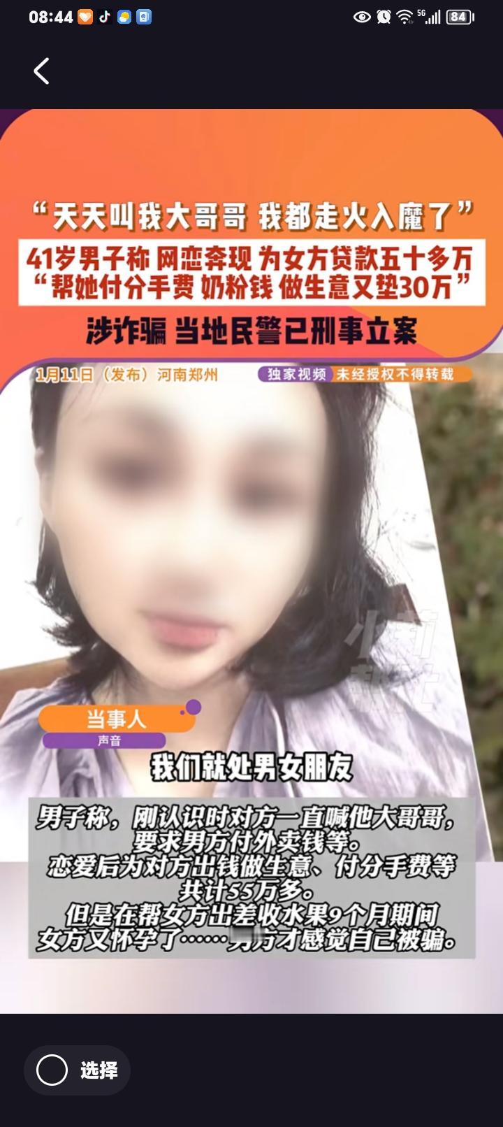 内蒙古一男子网恋付出近60万,远赴新疆打工9个月后,回家竟撞见女友身怀六甲,这场荒唐“爱情”实为精心骗局。2024年,41岁的郑先生在社交软件结识一女子,对方一声声“大哥哥”的甜言蜜语,让他深陷温柔陷阱。从最初500元吃饭钱,到6500元住院费、1万元奶粉保姆费,再到5万元前男友分手费,女子的索求层层升级,后续又以开奶茶店、水果店为由骗取30万元,郑先生为此背负50万元贷款。 为支持女友“创业”,郑先生被支往新疆收水果,9个月里省吃俭用攒彩礼,归来却面对女友隆起的孕肚,才惊觉孩子绝非自己的。警方调查认定,女子虚构经营项目骗取钱财,涉嫌合同诈骗已立案。根据《刑法》第二百二十四条,合同诈骗数额巨大可处三年以上十年有期徒刑。 网友热议:“甜言蜜语裹着刀,真心喂了白眼狼”“网恋谈钱必警惕,别让深情成笑话”。目前女子虽写下55.3万元欠条却分文未还,郑先生的遭遇也给所有网络交友者敲响警钟。网恋 网恋诈骗 虚假男友诈骗