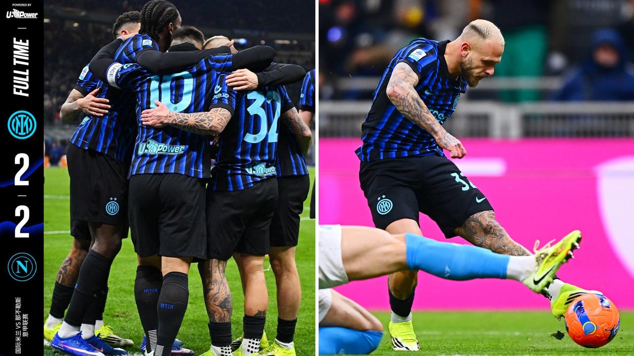 意甲:国际米兰主场2-2战平那不勒斯,6连胜遭终结。 迪马尔科与恰尔汗奥卢相继建
