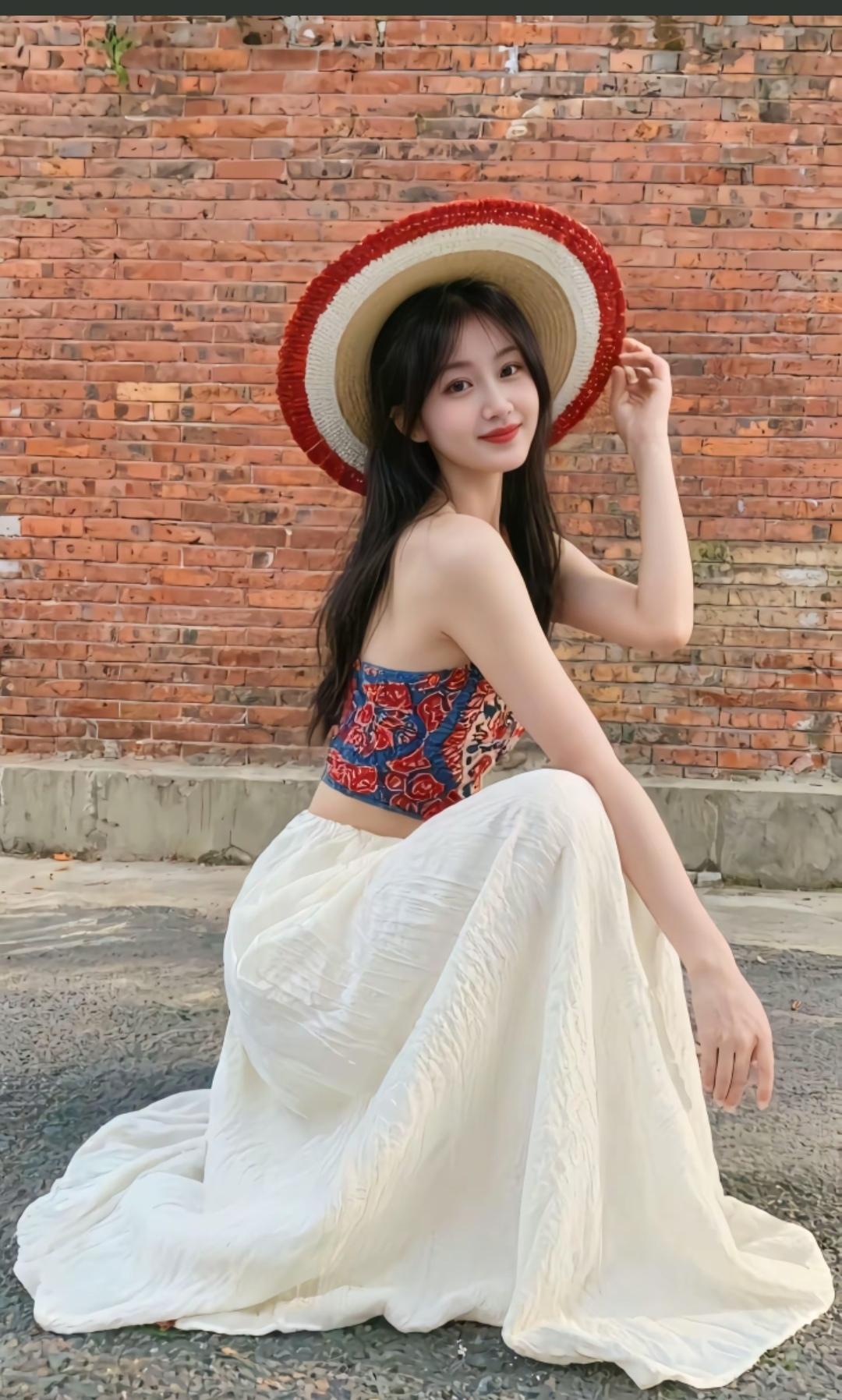 夏日风情,红裙与草帽的完美搭配,尽显优雅与浪漫。