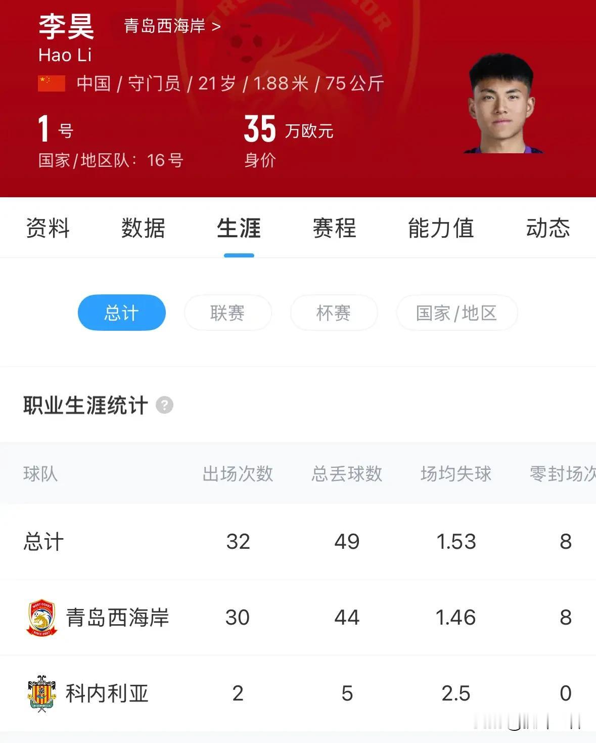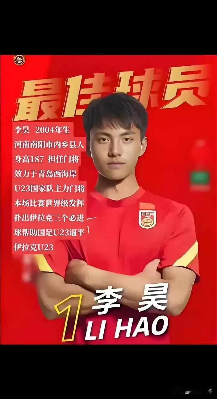 从李昊在U23亚洲杯的神勇发挥,未来十年国足在守门员位置可以无忧矣! 本届U23亚洲杯两轮战罢,中国队1胜1平保持不败占据小组首位,虽然他们的表现不尽如人意,还有很大的提升空间,但是守门员李昊却已经成为球队最大的惊喜,如果不是他的优异表现,中国队要想拿到如此的成绩纯粹是痴人说梦。 关于李昊的经历,04年出生的他从6岁就接触足球,2023年U20亚洲杯作为守门员的他首战曾经扑出日本队的点球,次战更是依靠神勇发挥帮助球队2:0完胜沙特,在杀入淘汰赛后和韩国在常规时间战平,最终遗憾在加时赛中告负,虽然无缘世青赛,但李昊凭借良好表现成功跻身亚洲杯最佳阵容。 此后李昊受到西甲球队马德里竞技邀请加盟B队,后被租借到西协甲科尔内利亚效力,去年联赛中期他加盟青岛西海岸并且发挥出色。 如今在U23亚洲杯上,李昊依然是中国队表现最为亮眼和稳定的球员,虽然他目前只有22岁,但足以具备入选国家队的资格,甚至可以直接成为主力门将,这对于国足2027年征战亚洲杯和2030年冲击世界杯都有着重大意义,至少在守门员这个位置不至于出现断档。 希望邵佳一给予充分考虑,建议尽快将李昊招至麾下进行淬炼成才![作揖][作揖][作揖]