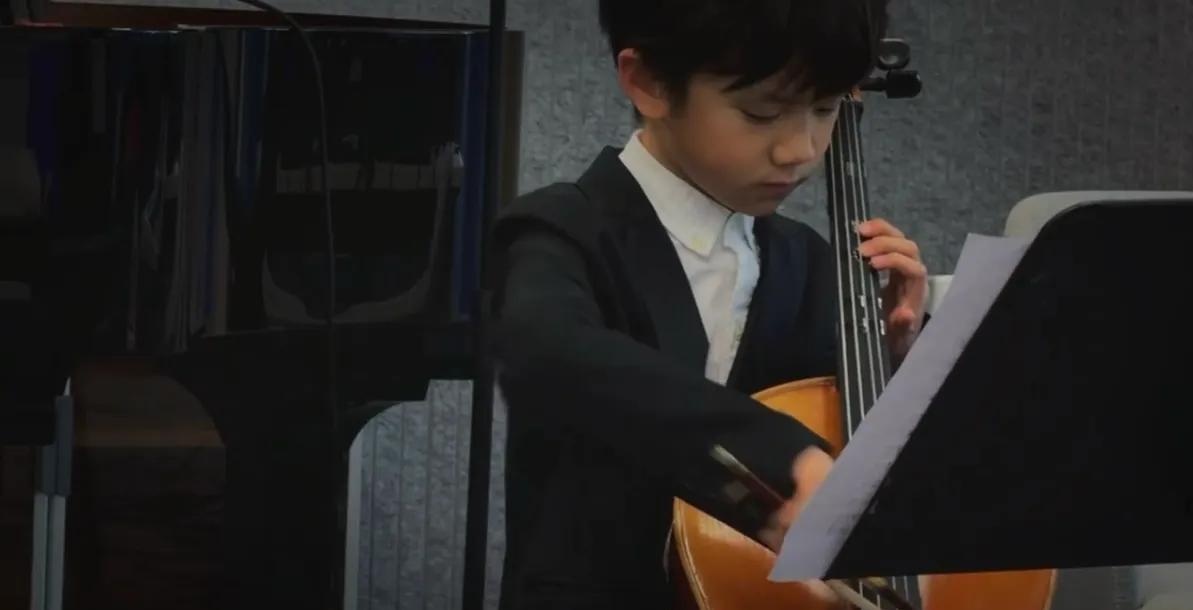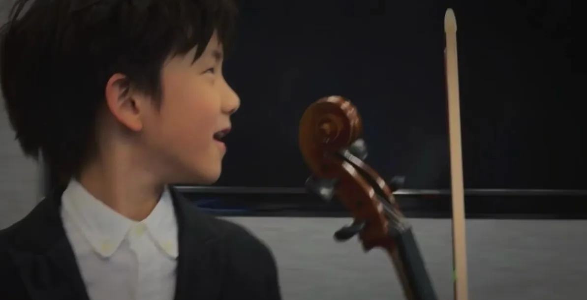 孙莉黄磊8岁的小儿子彼得潘,穿着黑西装白衬衫拉大提琴,和姐姐们一样颜值也很高。这一家人论颜值谁也不输谁。感觉都很有艺术范儿。