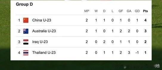 ——1、末轮战胜泰国,小组第1出线。2、末轮战平泰国:若伊拉克胜澳大利亚,伊拉克、中国同积5分,比较净胜球,U23国足小组第一或第二出线;若伊拉克平澳大利亚,U23国足5分小组第一出线;若伊拉克负澳大利亚,澳大利亚6分小组第一,U23国足5分小组第二出线;3、末轮负于泰国:若伊拉克胜澳大利亚,伊拉克5分小组第一,中国、泰国同积4分,但直接交手告负,将被泰国挤到第3,无缘出线;若伊拉克平澳大利亚,中国、澳大利亚、泰国同积4分,比较相互比赛间净胜球,3队争2个出线名额;若中国输泰国2球及以上,U23国足将被淘汰;如果中国队输一球,则需与澳大利亚比较进球总数,目前中国队进球数上落后澳大利亚一球。若伊拉克负澳大利亚,澳大利亚6分小组第一,中国、泰国同积4分,但直接交手告负,将被泰国挤到第3,无缘出线。