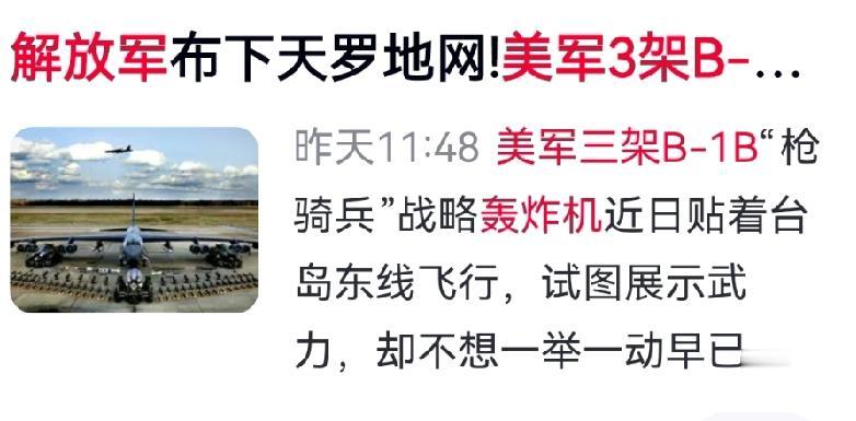 1月10日,美军3架B-1B轰炸机试图靠近台岛东部挑衅,刚一露头便被解放军雷达牢牢锁定。 我军防空识别区立即前推,划下明确“禁飞红线”。外交部“后果自负”的警告,绝非空言——背后是实实在在的战略能力支撑。 B-1B号称可挂载57吨弹药、超音速突防,但在今日台海已无优势。解放军雷达、导弹与无人机形成“全天候锁杀网”,红旗-9B反应仅需15秒,一旦进入260公里打击圈,便难逃被锁定。 即便从关岛起飞的军机,也在东风-26、东风-27的瞄准范围内,无侦-8更提供实时监控。 美方一面声称“维持现状”,一面频频挑衅,中方绝不接受。 中方警告美国基于实战化反制能力,包括雷达锁死、导弹待命拦截等措施,体现了对台海安全底线的坚定维护,识别区前推就是划出底线:谁碰,谁付出代价! 对此你怎么看? 美b一2轰炸机