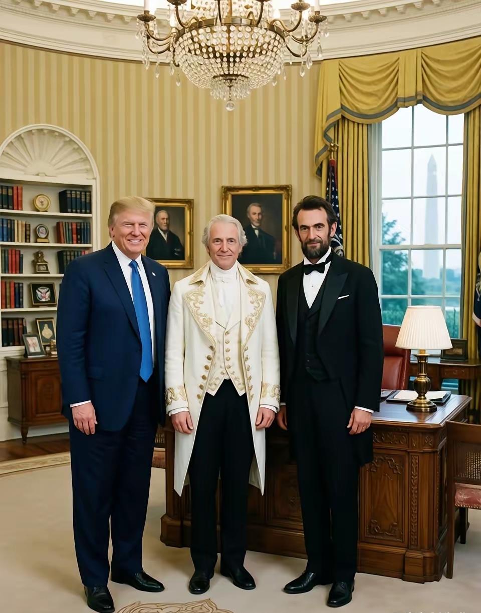 老特现在不顾一切的冲撞,夺取格陵兰,收编加拿大,从版图上“让美国再次伟大”。他想的就是有朝一日能够与华盛顿、林肯一样,成为历史上伟大的总统,并且希望这幅AI合影成真。不过,也很可能他加速美帝国的衰落,因为美国在国际上失去了一切信誉。