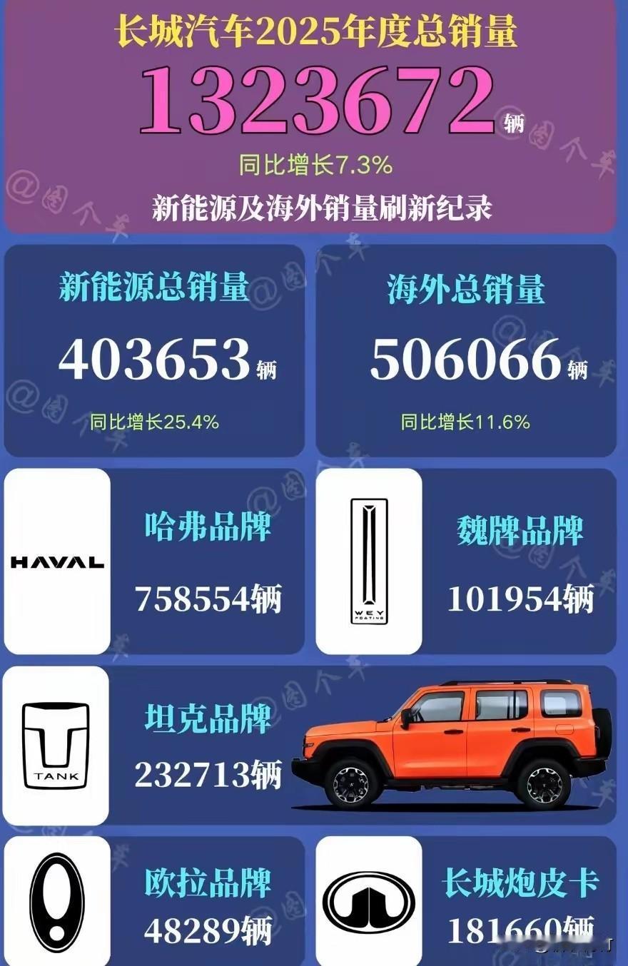 谁说长城不行了?人家2025年还是卖了130多万辆! 长城的销量跟比亚迪、吉利动辄三四百万比确实不高,但是仔细分析,长城的车单价都高啊,而且利润率有保证,估计利润还是会超100亿。 感觉长城的玩法才真正是高端的玩法,我不跟你们卷销量卷价格,我是保证挣钱的能力,不挣钱我不干。一步步按自己的节奏来发展,做好自己的细分市场。 一年下来有些车企看着玩的热闹,销量创新高,可是一看利润负的,搞得员工又累又拿不到钱。 反观长城,钱也挣了,双休也保证了,既得了实惠又得了名声,高 ,实在是高! 你感觉长城的玩法是不是更高端?