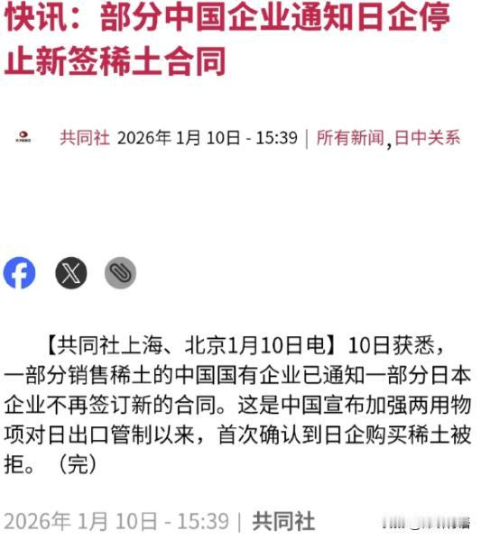 继续往死里整,这就对了! 一些人也许觉得,咱们这么收拾小日本,自己肯定也会承受不小的经济损失。之前我也分析过了,总体来说日本如果反击肯定会更疼,但中国不可能丝毫无损、纤尘不染。甚至于,在某些方面还要遭受较大的损失。但是,有时候有些事情哪怕遭受经济损失也要去做,比如国家安全。 你看看现任日本首相高市早苗在国会的发言,简直是把战争威胁摆到了明面上。 她公然说“台湾有事”可能构成日本能行使集体自卫权的“存亡危机事态”,说白了就是暗示一旦台海有动静,日本可能直接武力介入。要知道,历届日本政府对这个“存亡危机事态”都含糊其辞,就怕踩红线,而高市早苗直接把窗户纸捅破,这已经不是试探,而是赤裸裸的挑衅了。 她身边的亲信、负责核裁军事务的辅佐官,还公然喊出“日本应拥有核武器”,一边拿着核裁军的俸禄,一边鼓吹拥核,这操作也是没谁了。 也正是因为他们把话说得这么绝,我们才有了名正言顺的反制理由。 新年刚过,商务部就抛出了2026年第1号公告,直接加强对日本的两用物项出口管制,简单说就是只要是可能帮日本提升军事实力的东西,不管是无人机这种显性装备,还是电子零部件、核心软件这些基础材料,一律禁止出口,连第三方转卖都堵死了。 这一拳下去,日本立马就慌了,外务省官员天天跑来抗议,今天这个提要求,明天那个表遗憾,急得像热锅上的蚂蚁。 肯定有人担心,咱们这么干,自己的经济会不会受影响?说实话,会,而且某些领域影响还不小。 比如中日贸易里,日本是咱们第四大贸易伙伴,去年前十个月的贸易总值就有1.8万亿元,像一些高端电子元件、精密设备,咱们短期内还得依赖进口,反制措施可能会让相关行业成本上升;还有之前达成的关税减让安排,本来能让咱们买到更便宜的日本工业产品,现在这么一闹,这部分红利可能就要打折扣了。 但这些损失和国家安全比起来,真的不值一提,而且咱们的损失,跟日本比起来就是小巫见大巫。 就说稀土这个关键领域,日本对咱们的依赖度高到离谱。虽然这些年他们一直在找替代来源,但2024年进口的稀土里,中国占比还是超过70%,尤其是制造精密制导武器、高端芯片必须的中重稀土,咱们更是掌握着绝对话语权。 有日本智库算过账,如果中重稀土出口审查收紧持续三个月,日本经济损失就会达到6600亿日元,GDP得下降0.11%;要是持续一年,损失直接飙升到2.6万亿日元,GDP至少跌0.43%。 这还不是最要命的,咱们刚对日本的二氯二氢硅发起反倾销调查,这东西是芯片制造的关键材料,虽然会让咱们短期成本上升,但能倒逼国内产业加速替代,长远来看是在断日本半导体产业的根。 说到底,咱们这次反制不是一时兴起,而是精准打击日本的命门。高市早苗政府一门心思推动“再军事化”,2026财年的防卫预算都要突破9万亿日元,创下连续14年增长的纪录,还想着向其他国家卖武器,这就是在走军国主义的老路。如果咱们现在不及时出手,等他们把军事实力攒够了,再想遏制就难了。 现在借着他们发出战争威胁的机会,用经济手段敲山震虎,既能削弱他们的军事扩张能力,又能让国际社会看清谁才是地区和平的破坏者,这步棋走得太对了。 可能还有人觉得应该息事宁人,但大家想想,历史上日本军国主义就是靠不断试探底线才一步步走上侵略道路的。 现在的中国早就不是当年任人欺凌的样子,王毅外长用“倒行逆施”四个字评价高市早苗政府,已经把话说明白了。任何挑战咱们核心利益的行为,都必然付出代价。咱们承受一点经济损失,是为了守住国家安全的底线,为了不让历史悲剧重演,这笔账怎么算都值。 接下来,只要日本不收敛,咱们就继续加码,让他们彻底明白,狼子野心终究是死路一条。