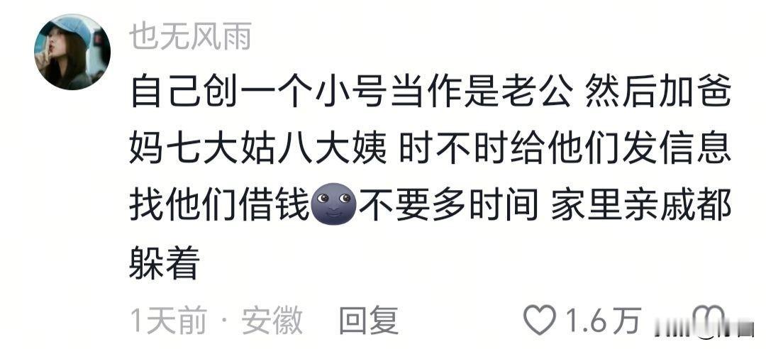 读书还是有好处的,刷到个视频,女子非常孝顺,给父母钱,给老家盖房,结果天天被老家的亲戚催婚。 女子一气之下,租了个假老公,结了婚,收了份子钱,然后不给家里人钱了,也不回去了 家里人问:为啥这样啊? 她说:老公不让回,老公不让给,老公看不上你们这些穷亲戚。 好了,没人再催婚也省去了一些麻烦,要不说读书有好处,之后不想生孩子了,就是老公不行,老公不想要。 评论区里个个都是人才,为什么亲戚总喜欢催婚,对她有什么好处,至今没想明白?催婚 读书真正的作用 读书能致富 读书坏处 规劝小孩读书
