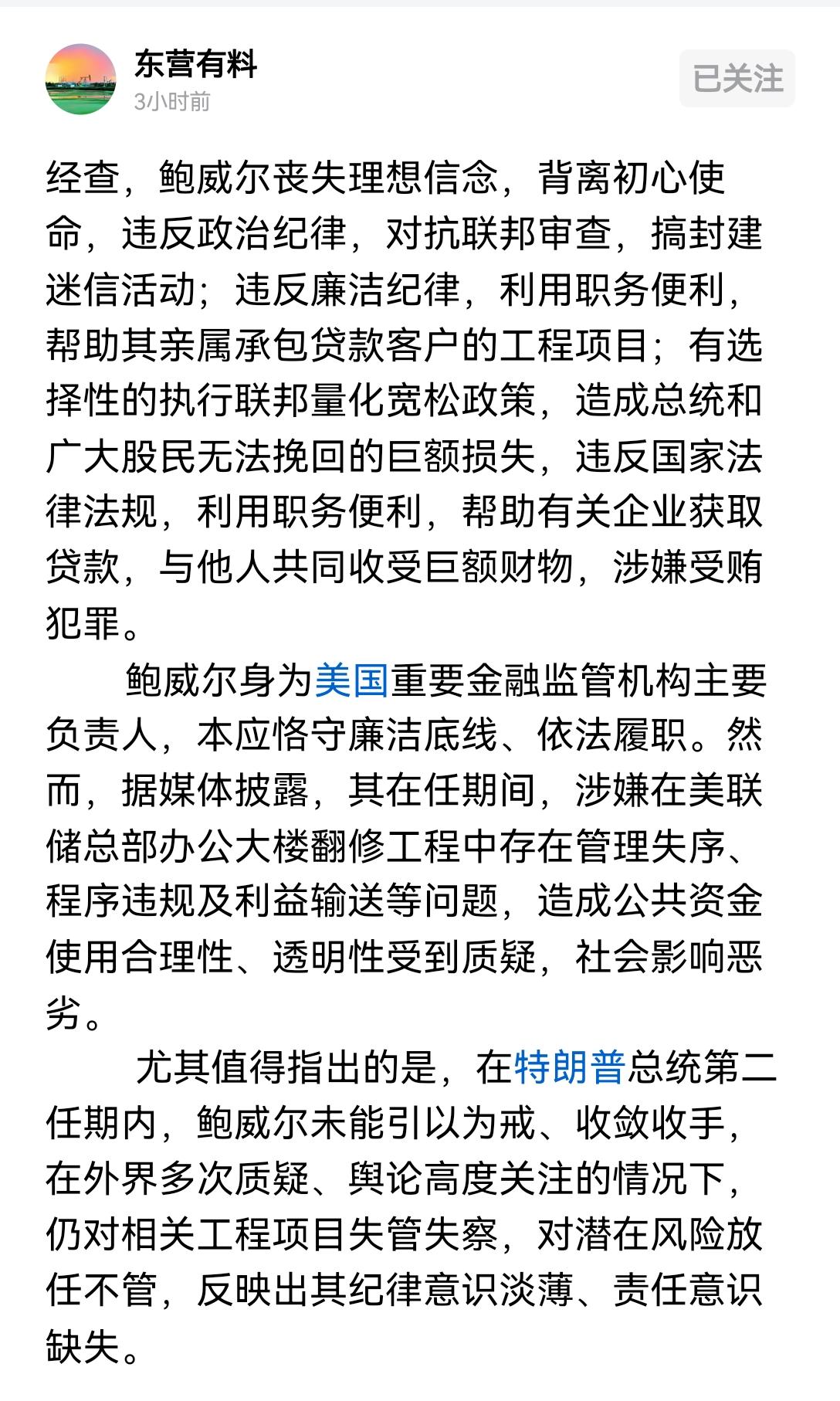 这才是真正的——鲍威尔“事发”通报(中国版)[尬笑]人才啊…路过不点个关注,都觉得对不起这创意[灵光一闪] [吃瓜群众]若能加一个——“违反组织纪律,在美联储内部搞团团伙伙”就更齐备了(生活纪律貌似还没爆出问题,就算了)[大金牙]