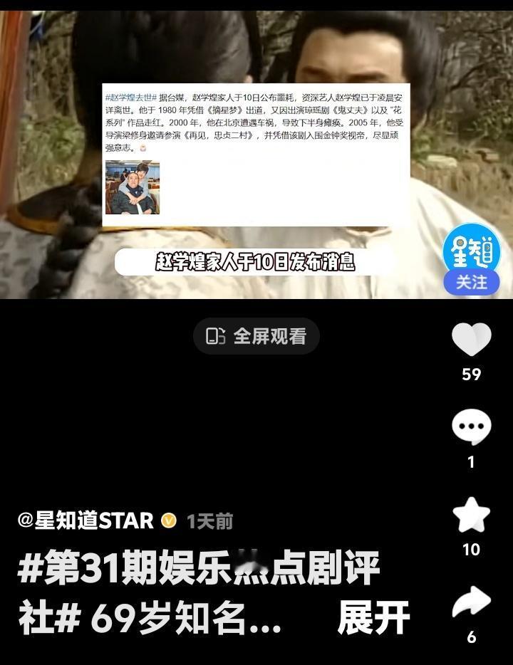 台湾老戏骨赵学煌瘫痪26年离世!妻子一句“嫌你臭”骂醒轻生丈夫,临终遗愿不办追思会,骨灰归于自然 演艺圈又传来一则令人唏嘘的消息。69岁的台湾资深演员赵学煌,在凌晨因泌尿系统并发脑炎悄然离世。许多人或许对这个名字感到陌生,但若提起琼瑶剧《鬼丈夫》中威严又温情的父亲,观众的记忆便会瞬间苏醒。他是荧幕上的“父亲专业户”,更是现实中被命运重击却未曾低头的勇者。 时间倒回2000年6月,赵学煌在北京拍摄《双面情人》时,为避让行人遭遇严重车祸。车辆失控的瞬间,他人生的轨迹彻底改变——颈椎断裂,胸部以下永久瘫痪。从舞台中央到轮椅之上,他失去的不仅是行动能力,还有嗅觉、视力,甚至活下去的信念。 绝望曾多次笼罩这个家庭。赵学煌坦言有过吞药、跳楼的念头,但妻子蔡秋蓉用最“狠”的方式拉住了他。她骂他“嫌你臭、嫌你脏”,字字刺耳,却句句藏着泣血的深情。后来赵学煌才懂,那是妻子怕他放弃,用愤怒掩盖恐惧,用责备唤醒求生欲。 蔡秋蓉的26年,是全天候的看护、复健助手、餐馆经营者,更是心理支柱。她一边打理家庭生计,一边用澎湖腌菜等家常菜暖他的胃,也暖他的心。她说:“继续过,好好过。”这六个字,成了夫妻俩对抗苦难的誓言。 令人动容的是,赵学煌并未被轮椅困住艺术生命。2005年,他坚持亲自出演《再见,忠贞二村》中的瘫痪父亲,拒绝替身,凭借细腻演技入围金钟奖最佳男主角。他说:“演戏让我忘记痛苦。”镜头前,他依旧是那个眼里有光的演员。 晚年病痛加剧,去年11月他因感染送入ICU。妻子始终守在床边,直到今年1月10日凌晨,他安详离开。而他的遗愿如此淡然——不办追思会,骨灰以植物葬回归自然。仿佛在说:“我来时一身轻,走时亦不扰清风。” 赵学煌的故事,不是简单的悲剧。它让我们看到苦难中迸发的人性光辉:妻子的守护,是爱情最粗糙也最坚韧的模样;他的坚持,是对命运最沉默也最有力的反击。人生或许无法选择剧本,但如何演好角色,取决于自己。 如今,他化作春泥,归于尘土。而那句“嫌你臭”背后的深情,那份轮椅上的倔强,将长久叩问世人:若命运赠你荆棘,你是否还有勇气,开出花来? (来源: 综合台媒报道、剧组亲友访谈及公开影像资料) 爱情真谛 生命韧性