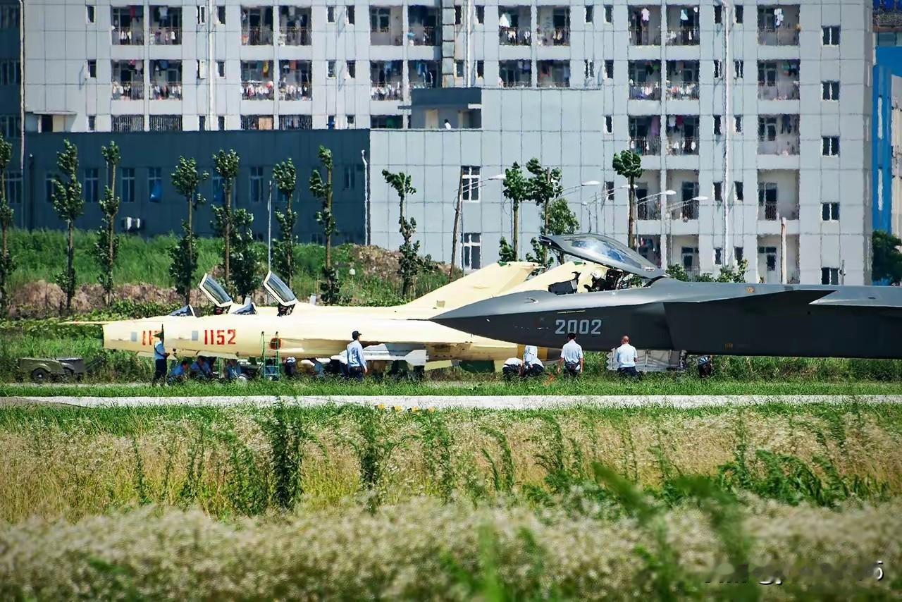 歼-20首飞时,执行伴飞任务的是歼-10S,因为双座机型便于观察首飞机型的各种情况。但出人意料的是2架歼-7的黄皮机也出现在了首飞现场。歼-7G是在2006年停产的,但最后一批交付的是出口到孟加拉国的歼-7,之后歼-7系列生产线关闭。但歼教-7的生产线一直使用到2017年才停产。也就是说,我们看到的在首飞现场的这2架黄皮歼-7是出口型而不是自用型。如果确认这张照片确实拍摄于歼-20首飞现场,那么,从交付时间来看,这应该是交付孟加拉国的那一批,因为歼-7系列战斗机是成飞生产的,而歼教-7是由贵航生产的。但可以肯定的是,这两架歼-7出现在机场纯属偶然,和歼-20试飞并无关系。