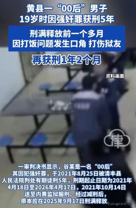 河南安阳,内黄县。00后的谷某,在19岁时犯强奸罪,被判5年,送到内黄监狱服
