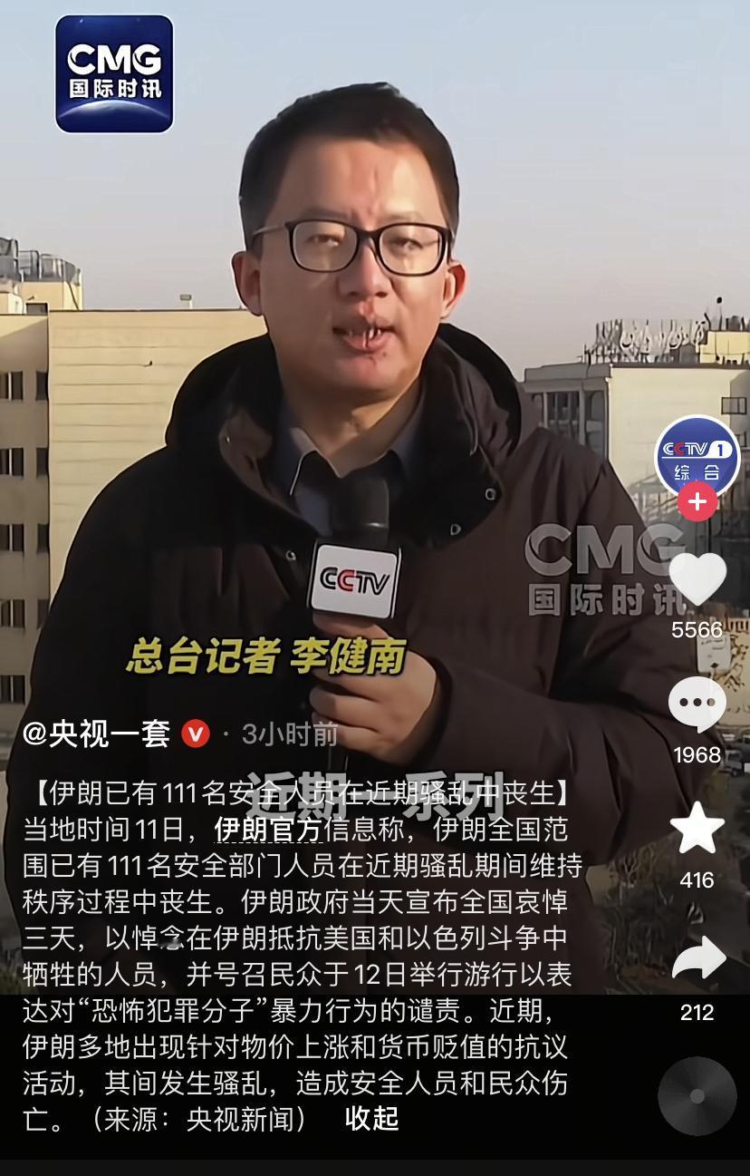 伊朗已有111名安全人员在近期的骚乱中丧生! 从这个伊朗官方公布的数字上来看,那这一次的骚乱情况还是非常严重的,因为为了应对此次骚乱,伊朗选择将全国的网络全部给掐断了,外界能掌握的视频资料非常的稀缺。 这是央视新闻的相关报道,引用的内容是伊朗官方所说的内容。各位是怎么看的?欢迎评论区留言。