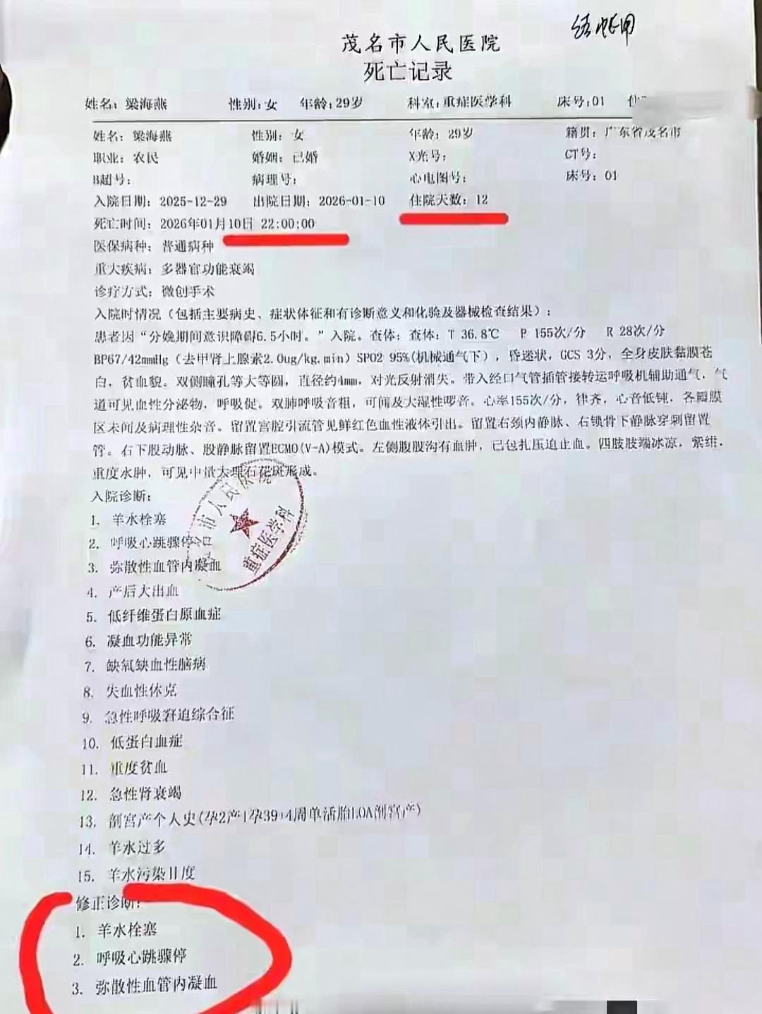 人财两空!广东宝妈梁海燕去世,因羊水栓塞导致,十天花费超50万 谁能想到,产检一次不落、孕期坚持锻炼的29岁舞蹈老师梁海燕,会在生孩子这件事上,永远闭上了眼睛。 这个笑起来有小虎牙、酷似昆凌的姑娘,本应抱着刚出生的女儿享受初为人母的幸福,却因为一场突如其来的羊水栓塞,走完了短暂的一生。 从信宜妇幼紧急转到茂名市人民医院,十天时间,50多万砸进去,人工心肺机、ICU各项抢救措施轮番上阵,家底掏空、亲戚朋友的钱借遍,还是没能打赢这场和死神的赛跑。 刚出生的女儿,连妈妈的怀抱都没感受过,家人更是陷入了人财两空的绝境,还要背负着沉重的债务。 有人说羊水栓塞是产科“死神”,发病率低但死亡率高,可这真不是无解的绝症。关键就在黄金抢救的那几分钟,基层医院能扛住吗?梁海燕发病时,县里医院设备不足、应对经验欠缺,只能先打止血针勉强维持,赶紧联系上级医院转诊,等转到茂名市人民医院时,她已经休克超过一小时,早就错过了最佳救治窗口。 普通家庭生孩子,谁不是优先考虑离家近、费用低?谁能预判这种小概率的凶险急症?我们总说分级诊疗好,可不能让“分级”变成孕产妇的“生死线”。前两年江苏也有个产妇遭遇羊水栓塞,花了80多万抢救,最后还是没能留住性命,这样的悲剧,真的不能再重演了。 梁海燕的经历给所有备孕、待产的家庭敲响了警钟:生孩子从来都不是小事,别再迷信“在哪生都一样”。也真心希望,基层医院的产科急救能力能尽快跟上,配齐必要设备、完善抢救流程、打通跨院转诊绿色通道,让每个妈妈都能平安地抱着自己的宝宝。
