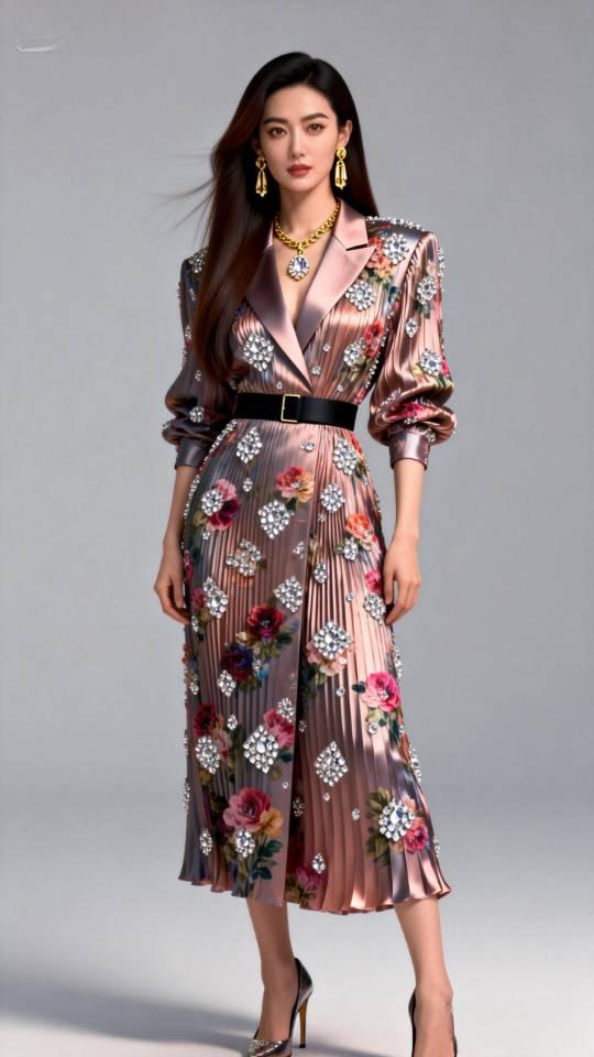 优雅玫瑰金长裙,尽显奢华气质!写真。连衣裙 连衣长裙