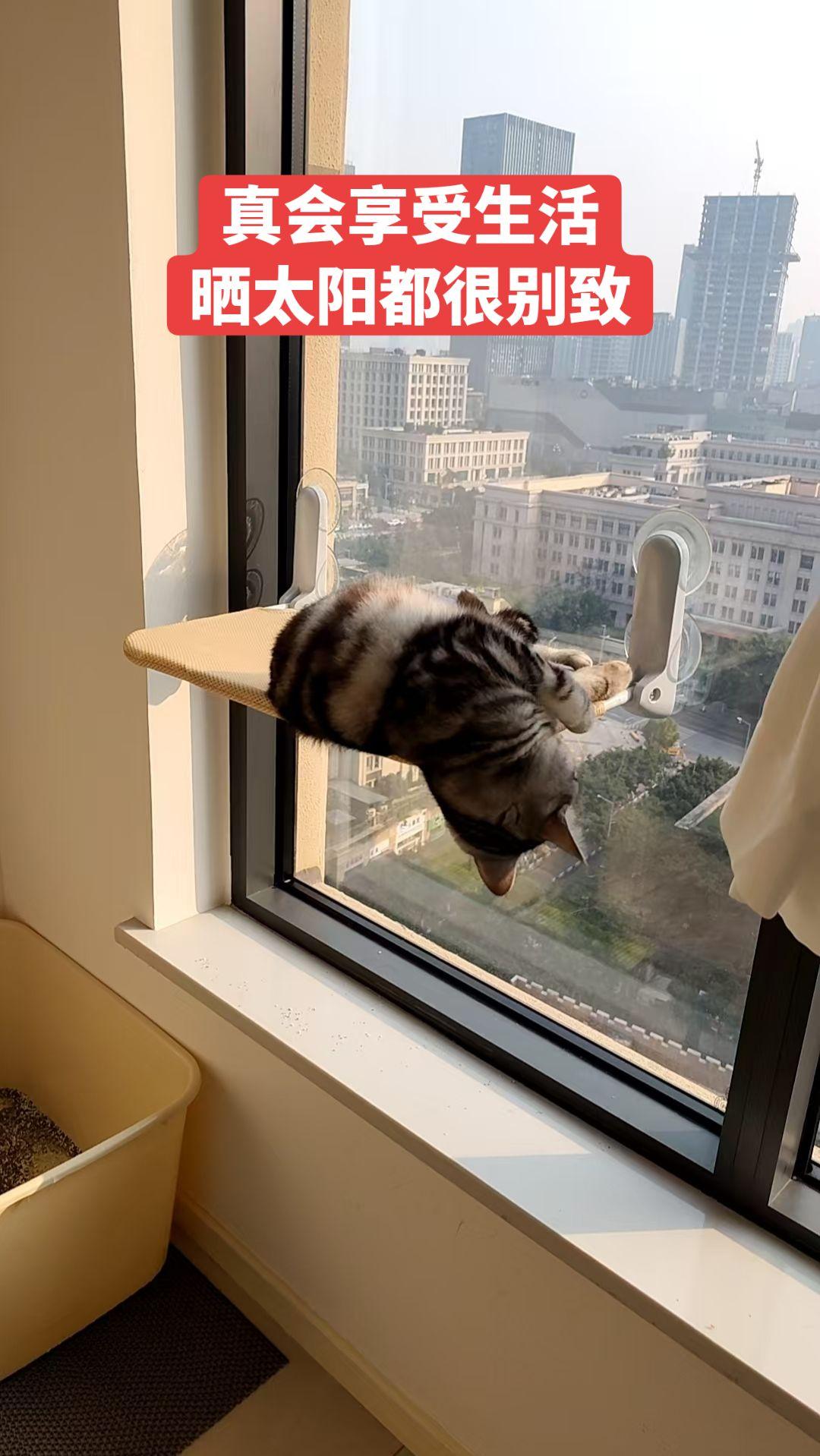 猫大爷好会享受生活 晒晒阳光 吊吊腰