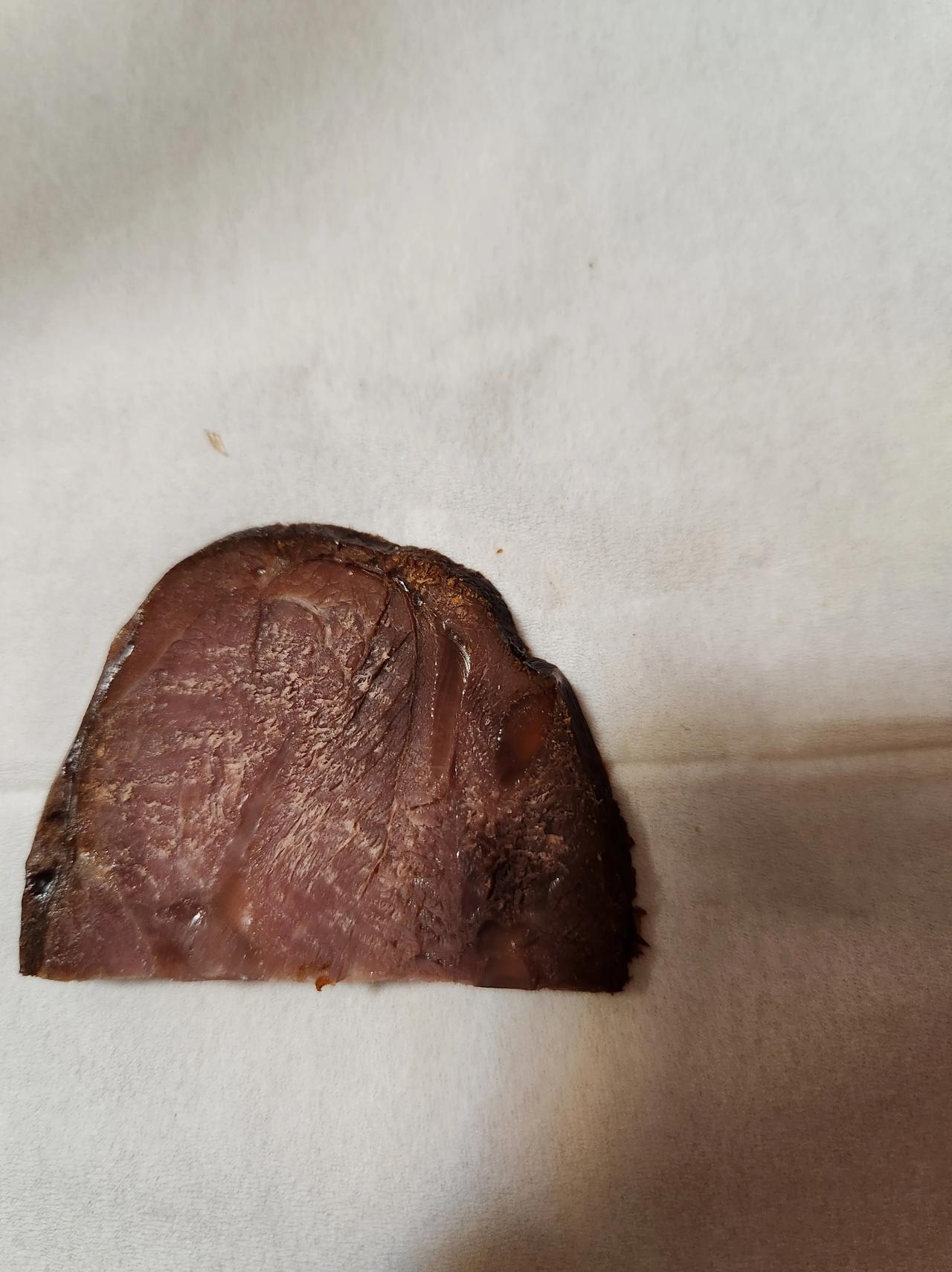 来个卤菜大师,看看这个牛肉是真的吗? 单位发的卤牛肉,没有异味,都快吃完了,发觉这个里面的筋的位置和形状有点奇怪,但自己不是这方面的专家,麻烦谁懂得的帮忙看看。 单位的年货,集团采购的。 美食记 卤牛肉五香牛肉 卤牛腱子肉