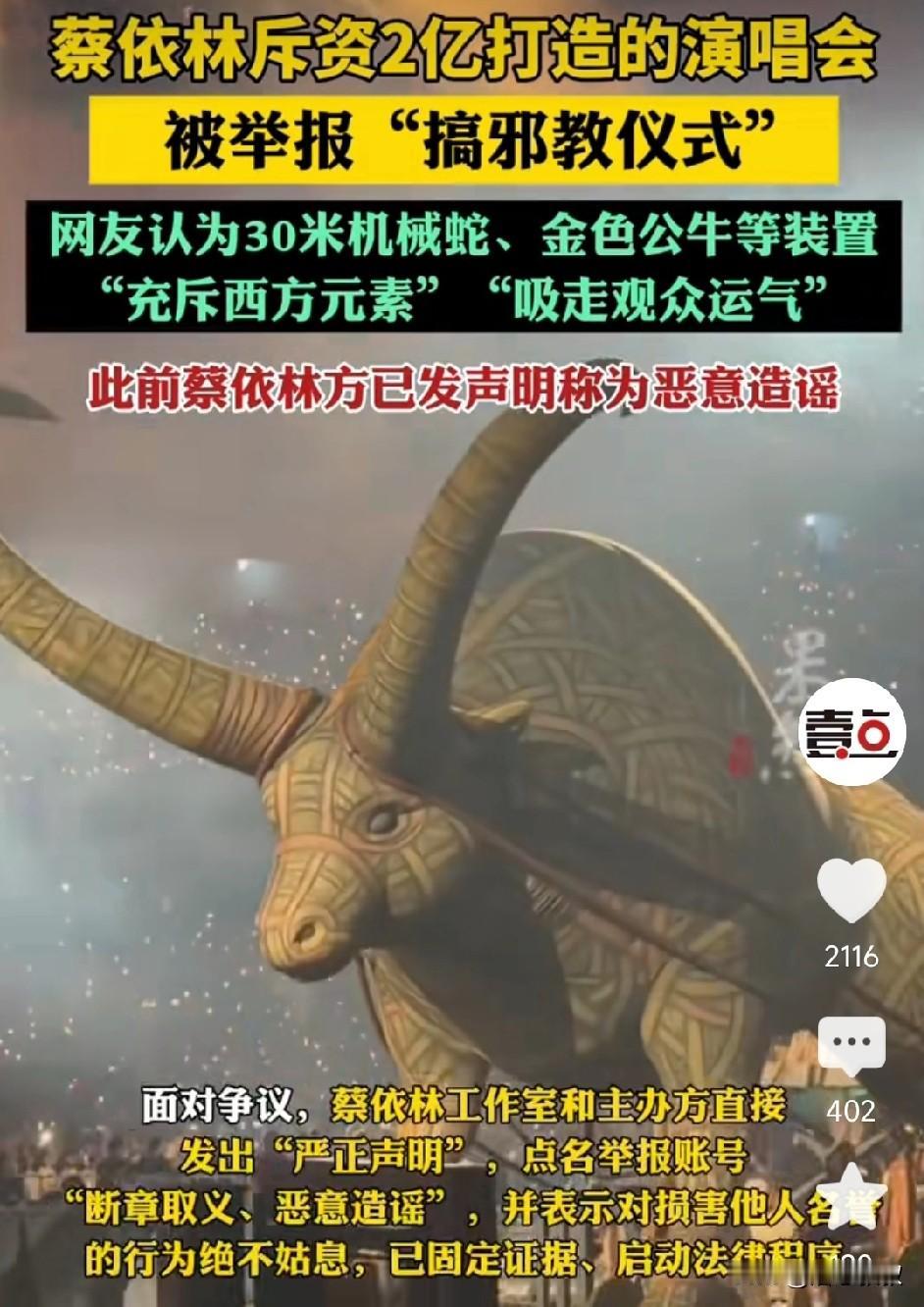 看了蔡依林的演唱会确实吓到了, 很像诡异的祭祀现场。 现在也不知怎么了,都想靠舞台和服装出彩。 唱歌的不研究歌词调调, 他老研究舞台和奇装怪服。 演员不研究台词和剧本, 他老研究直播带货上链接。 但凡有个喜欢的演员明星, 几年都没出过作品了, 都在直播间呢。 难道你们忘了什么是主业了? 以前很喜欢老潘头的小品, 带货带的一身非议。 虽然嘎子没什么好作品, 但演电视的时候混的还是不错的, 自从带货直接带沟里了。 三只羊够牛了吧! 带一段货得了,老带迟早出事。 闫老师认错了吧,要不是直播间里满嘴跑火车哪有这事。 干好主业,保持一点神秘感,别老直播间瞎晃悠。