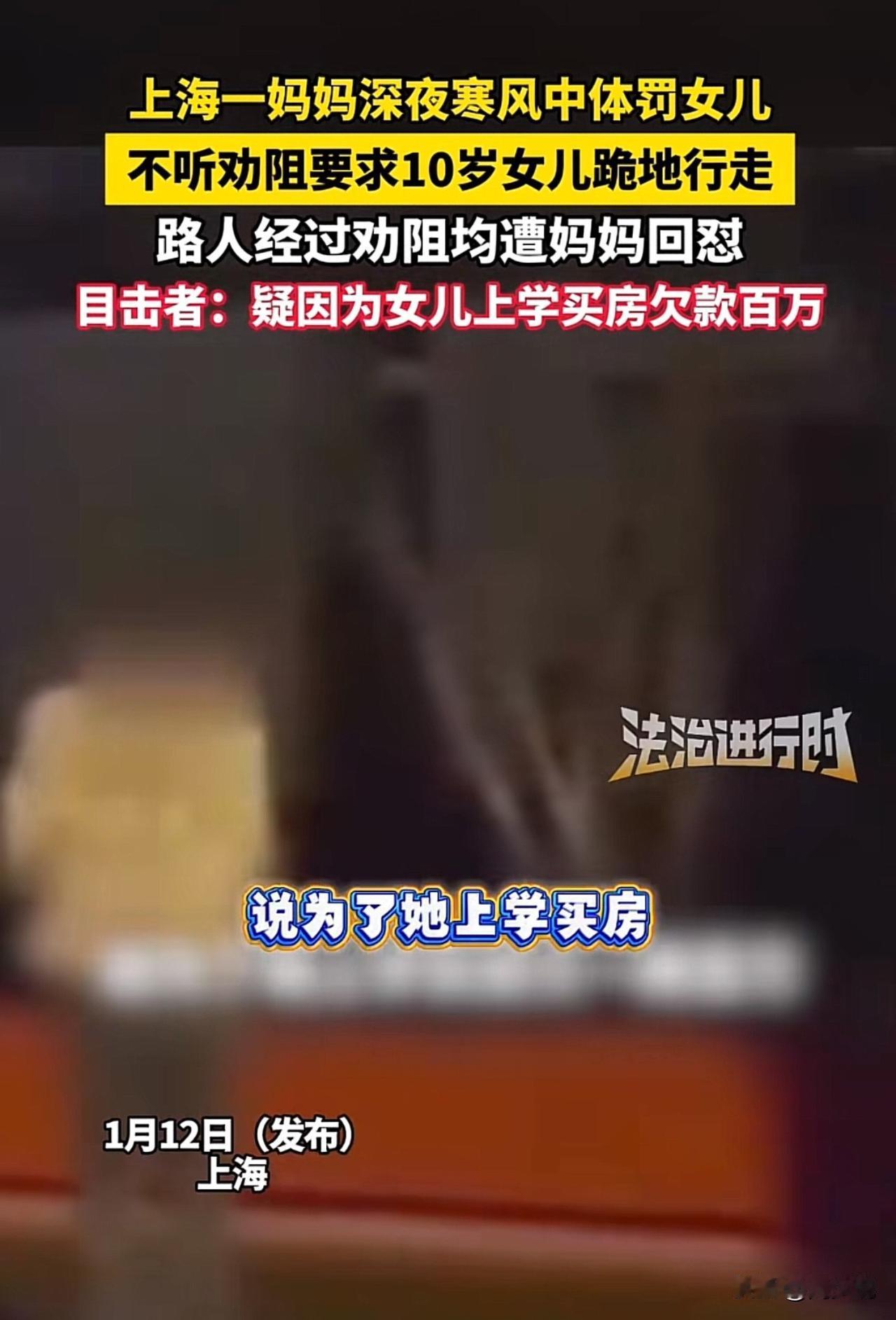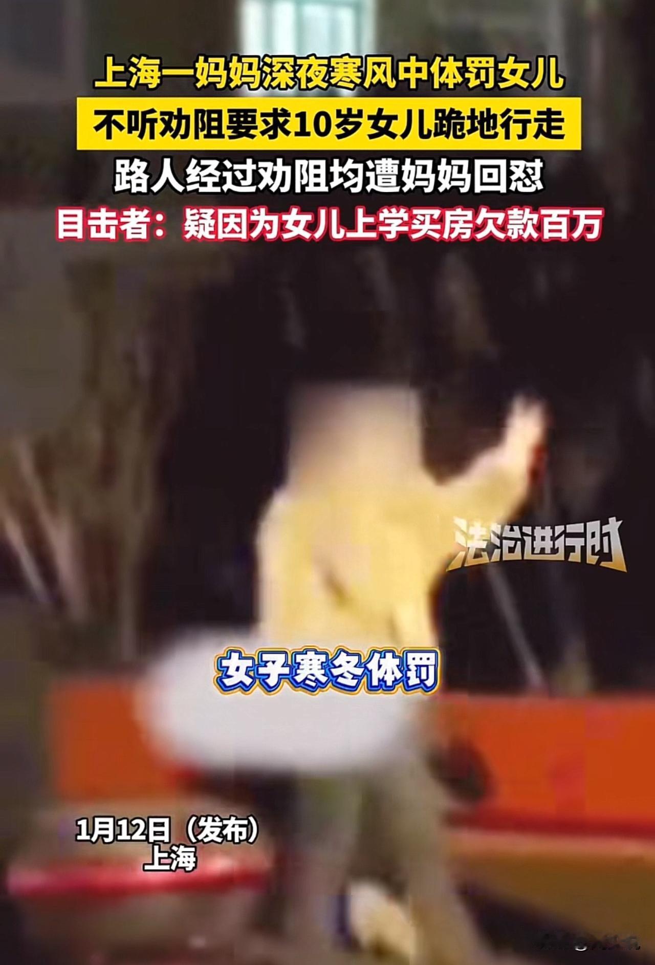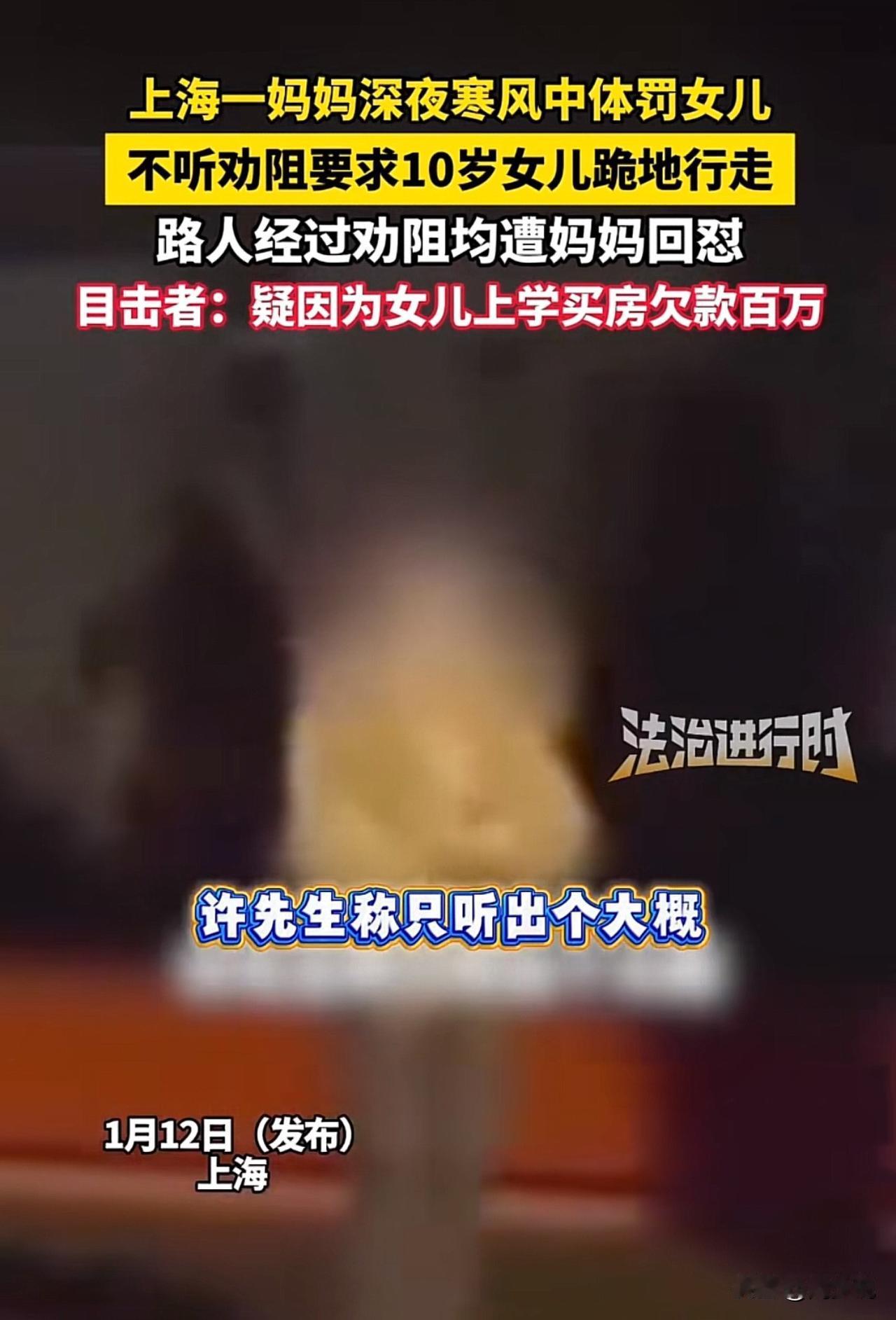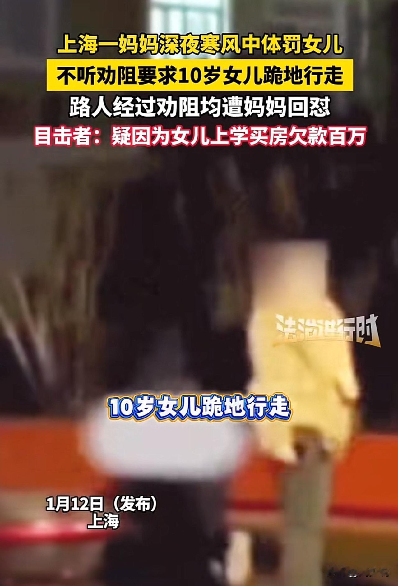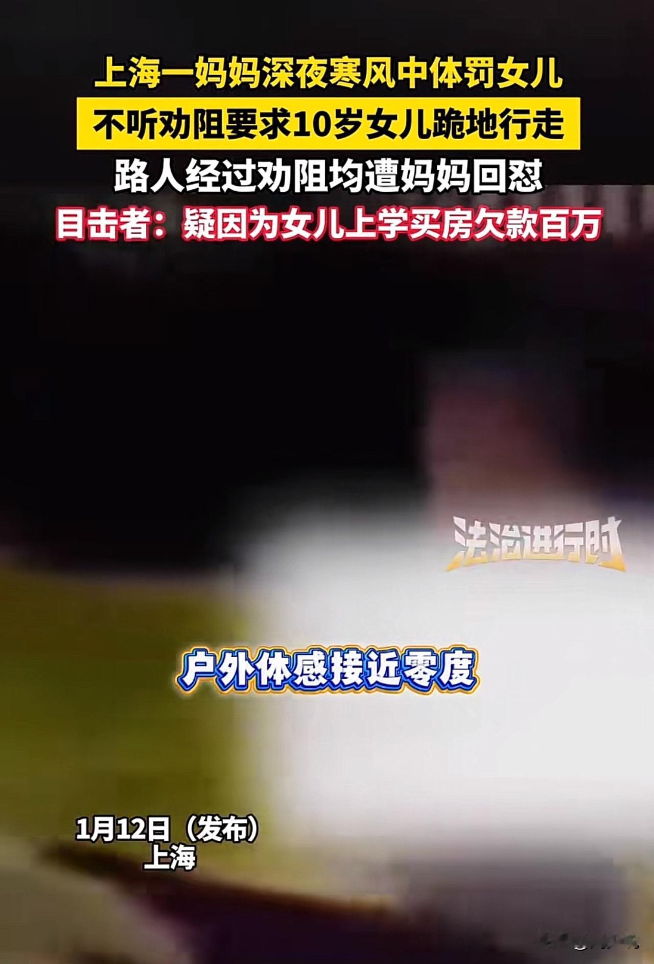 “太极端了!”近日,有网友爆料上海街头一位母亲竟逼着10岁女儿跪地挪步,任凭孩子在湿冷地面挣扎。多名路人看不下去上前劝阻,却被这位情绪激动的母亲出言不逊怼回,引发现场众怒。据目击者透露:疑因为女儿上学买房欠款百万! 此事曝光后,网友炸开了锅。有网友说:“零下的天,孩子膝盖得多疼?这哪里是教育,分明是虐待!” 也有网友说:“就算孩子犯错,也不能用这么极端的方式惩罚啊!” 还有人直言:“这位妈妈的教育观太扭曲了,根本没把孩子的身心健康放在眼里。” 事发后,女孩学校的心理老师及时介入,花了两个多小时耐心劝导,终于让固执的母亲松口,承诺会改正教育方式,街道和居委也表示会持续关注这户家庭。 看完这事,周少想说这位妈妈的处理方式真有些过于极端了,哪怕是女儿上学买房欠款百万,也不能把火气撒到孩子身上,教育的本质是引导而非伤害。 其次,为人父母,难免有对孩子失望的时候,但再愤怒也不能突破底线。用羞辱式的惩罚发泄情绪,只会在孩子心里埋下自卑和叛逆的种子。 真正的教育,是带着温度的约束,是用爱和耐心教会孩子明辨是非,而不是用冰冷的体罚,毁掉孩子对家庭的信任。希望这位母亲能真正醒悟,也愿所有家长都能明白:好的教育,从来都与暴力无关。#寻美三湘# #长沙新朋友#