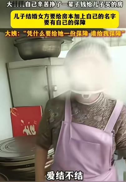 大妈辛苦挣了一辈子钱,给儿子买了一套婚房,女方婚前要求在房产证上加名!大妈“凭什么要给她一份保障,谁给我保障,爱结不结!”网友炸锅了! 陈大妈今年已经63岁了,是一位典型的东北大妈,一辈子靠着自己的双手打拼,把家里生活一手撑起来。 年轻的时候,她跟丈夫一同在工厂上班,工资不高,但勤勤恳恳,把两个孩子拉扯大。丈夫早些年因为病去世,家里就剩下她和儿子小李。 小李大学毕业后,一直在本地一家私企工作,收入算不上高,但勉强稳定。 陈大妈看儿子工作稳定,也到了该成家的年纪,心里一直盘算着:一定要给儿子置办一套婚房,让他有个踏实的家。 为了攒钱买房,陈大妈几乎倾尽一生积蓄。她住的老小区房子已经老旧不堪,但她一直住得简朴,把能省下的钱都攒了起来。 好不容易,经过三年多的积蓄和贷款,她终于在市区一个还算新、交通便利的小区买下了一套两居室的婚房。 房子装修简洁,但布置得温馨,陈大妈每天想起儿子将来能在这里组建家庭,心里就满足。 没想到,儿子恋爱的事情却让她头大。小李的女朋友小赵是本地一家私企经理的独生女,人长得漂亮,性格开朗。 小李交往不久后,女方提出了婚前的一个要求——希望婚房在房产证上加她的名字。 一开始,陈大妈根本没多想,只是愣了一下。她心里嘀咕:这房子是自己一辈子攒的钱,她凭什么要把自己的积蓄平白无故分出去? 她忍不住和儿子吵了起来:“你女朋友她家不是有房吗?她要保障,凭什么要你妈给?你爸妈辛苦一辈子攒的钱,要分一半给她? 她爸妈不给,她爸妈不能多给点陪嫁吗?谁给你们保障,你们自己说爱结不结!” 小李在一旁很为难,他对母亲的话心里有愧,但又觉得女朋友的要求不无道理。毕竟,现代婚姻里,女方为了保障自己利益,要求房产加名也算是普遍做法。 可是,他又不想让母亲的积蓄被瓜分,心里左右为难。 小赵的态度很坚决,她认为婚房本就应是双方婚姻共同生活的保障,如果不加名,将来可能会出现矛盾和争议。 她甚至提出:“陈阿姨,我不是贪图你家的钱,我只是想有一个属于我和小李的家。如果你们觉得不合适,那也没办法,咱们可以再商量其他方案。” 陈大妈听得火冒三丈,她拍了拍手里的茶杯,怒气冲冲地说:“我这一辈子辛苦挣钱,就是为了让你们小两口有个家,你倒好,这婚还没结,就先跟我讲保障! 我凭什么给你保障?爱结不结,你自己说!” 事情闹得越来越大,最终儿子不得不站在母亲和女友之间做调解。小李一方面想让女友开心,另一方面又不想母亲伤心,他心里憋得难受。 他尝试劝说小赵:“小赵啊,我妈辛苦一辈子的钱,全都是为了我。她不是不喜欢你,而是怕以后你们有矛盾,房子会牵扯到她的钱。” 小赵叹了口气:“我理解陈阿姨,也感谢她这么多年的付出。只是,我希望有一些保障而已,这不意味着我要侵占她的钱。我可以接受其他形式的保障,比如婚后协议或者财产公证。” 但陈大妈根本不听这些,她觉得这是给她施压,她说:“保障?你要保障,你爸妈多给点陪嫁啊! 谁给我保障,我偏不给!我这一辈子没少省吃俭用,就是想给你们小两口个温暖的家,不想被你们逼着分我的积蓄!” 这件事情被小李的同事和邻居知道后,大家都议论纷纷,有人说陈大妈太强硬,不考虑女方感受;有人则支持陈大妈,说辛苦攒下的钱凭什么无条件给别人。 网络上也炸开了锅,各种观点激烈碰撞: 有人评论:“我觉得陈大妈做得对,这房子是自己一辈子血汗钱,给谁都不亏,可是也不能随便分出去。” 有人说:“女方要求加名也合理,这是现代婚姻保障啊,你不加名将来有事难道还不纠纷?” 还有人感慨:“现在婚姻里,父母的财产成了焦点,感情似乎越来越少了,真心累。” 陈大妈自己倒是一点不在意网络的议论,她觉得自己辛苦攒了一辈子钱,不是为了谁来分她的,而是为了孩子有个安稳的家。 她说:“网络上吵什么,我不管。我这一辈子勤勤恳恳,把孩子养大,我就开心了。房子是给他住的,不是给别人攀附的。” 小李看着母亲固执的神情,也无可奈何,只好向女友解释:“我妈这一辈子辛苦,你想想她的心情吧。我知道你的立场,但她真的是不想分她的钱给别人。” 最终,小赵妥协了,她不再坚持加名,而是提出用婚前协议的方式保障自己权益,并且希望婚后双方公平协商房产问题。陈大妈虽然心里有些不快,但看到女方态度诚恳,也松了口气。 这个事件在网络上引发了广泛热议,许多网友纷纷表达自己的看法:有人为陈大妈点赞,称辛苦一辈子的积蓄,父母有权决定;有人为女方鸣不平,觉得现代婚姻保障不可或缺。 也有人认为,这件事折射了现代社会里家庭、婚姻与财产之间复杂的关系。