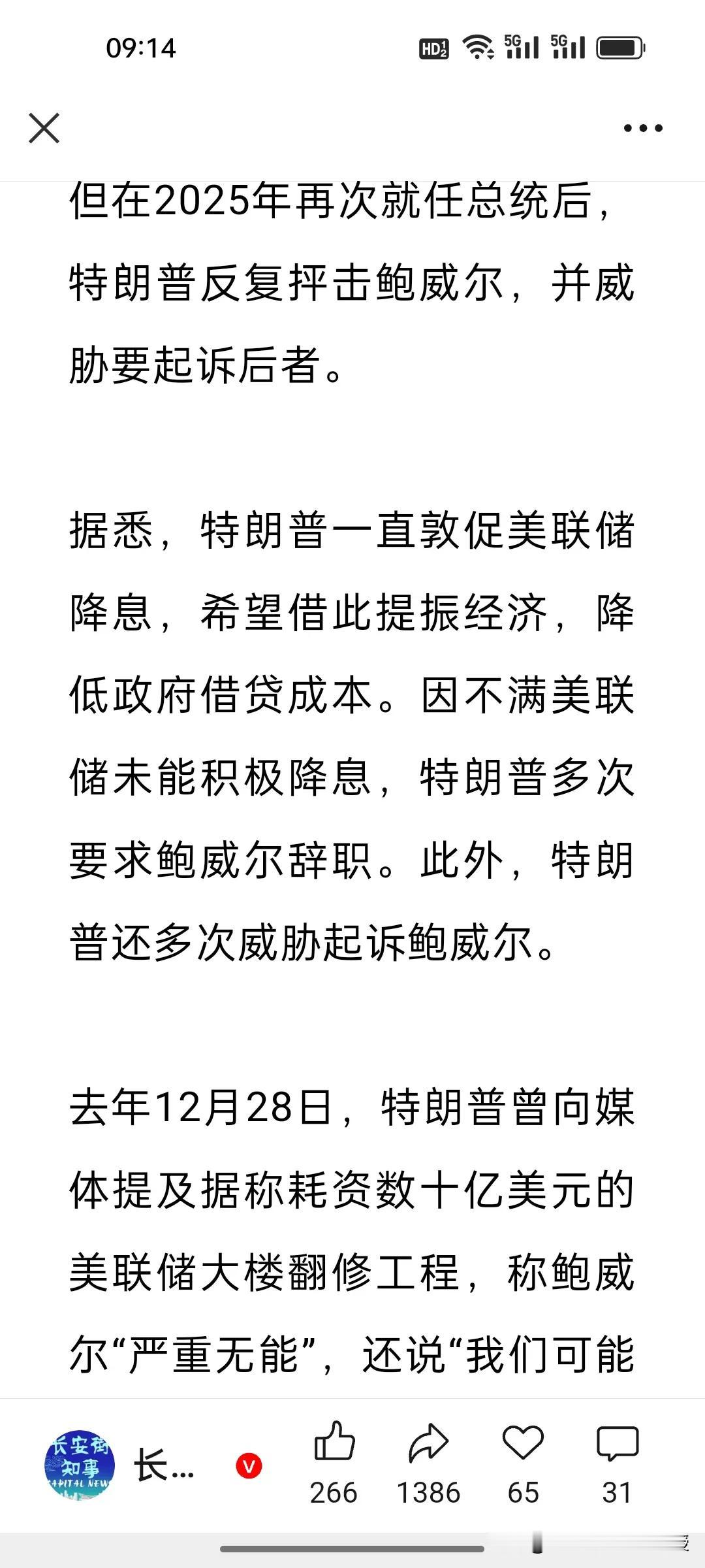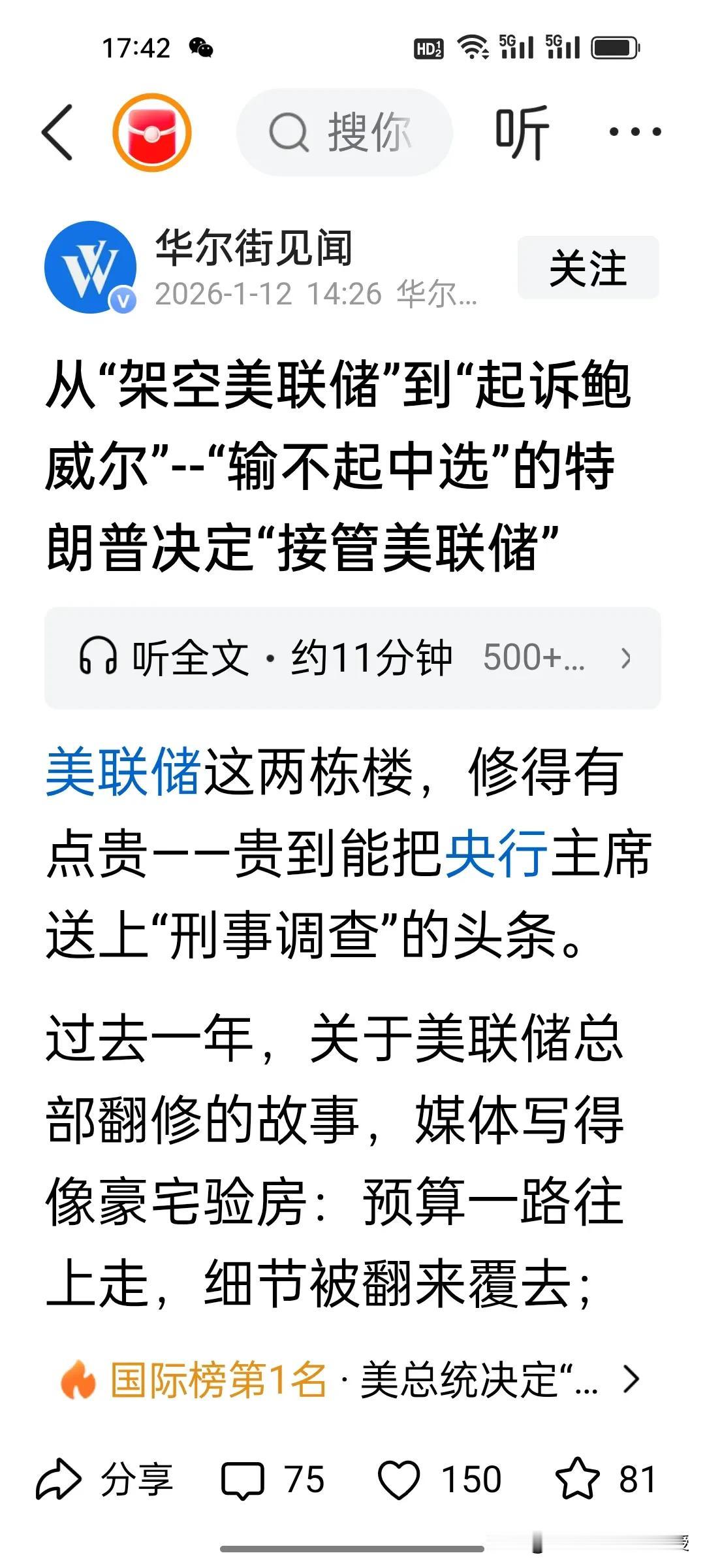 特朗普用对待委内瑞拉总统的方式在对待美联储主席鲍威尔!美联储75年保持的独立性或终结! 今天鲍威尔被刑事调查,且特朗普准备接管美联储了,鲍威尔11日晚发声明证实,特朗普政府因他2025年夏天对美国国会所作证词,威胁对他提起刑事指控,并已于9日向美联储发出传票。鲍威尔认为这是“借口”,目的是就美联储降息问题进一步向他施压。 鲍威尔跟特朗普最大的过节就是鲍威尔没按照特朗普的要求降息,因此特朗普一直耿耿于怀,不断向他施压,所以找了个修美联储大楼超支的借口,就像对委内瑞拉一样,找个贩毒的借口抓总统,特朗普今天还发文说自己是委内瑞拉代总统。 鲍威尔现在面临两个选择,要么主动宣布辞职,正中其怀,特朗普正好可以安排他早就心仪的人选,要么就听话降息,这样才能明哲保身,要不然委内瑞拉总统的下场就是鲍威尔的下场,谁说美国司法公正的呢?特朗普亲自都说了,自己根本不需要国际法,联合国会费拖欠30亿也无视赖着不交,他说自己的道德观就是自己唯一的限制。 从1951年《财政部—美联储协议》确立货币政策完全独立算起,美联储已经独立了75年。现在当司法沦为政治打压的工具,当美联储的独立性被权力碾碎,所谓的美式民主不过是一场自欺欺人的闹剧。