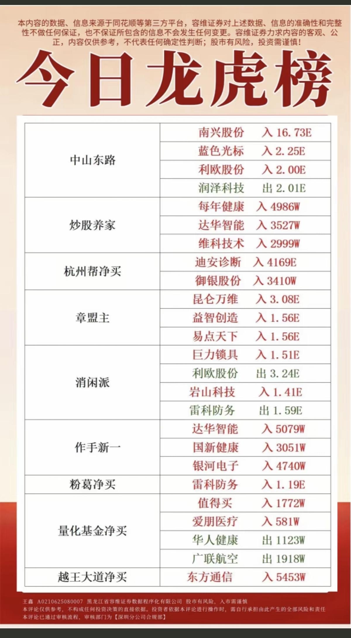 1.12周一 游资大佬们都买了啥股票? 游资龙虎榜! 中山东路 入蓝色光标,利欧股份 炒股养家 入美年健康 达华智能 章盟主 入昆仑万维 易点天下,专门搞 AI智能体去了 游资票换手率过高时需要注意,散户谨慎参与,把握买卖的节奏很重要。
