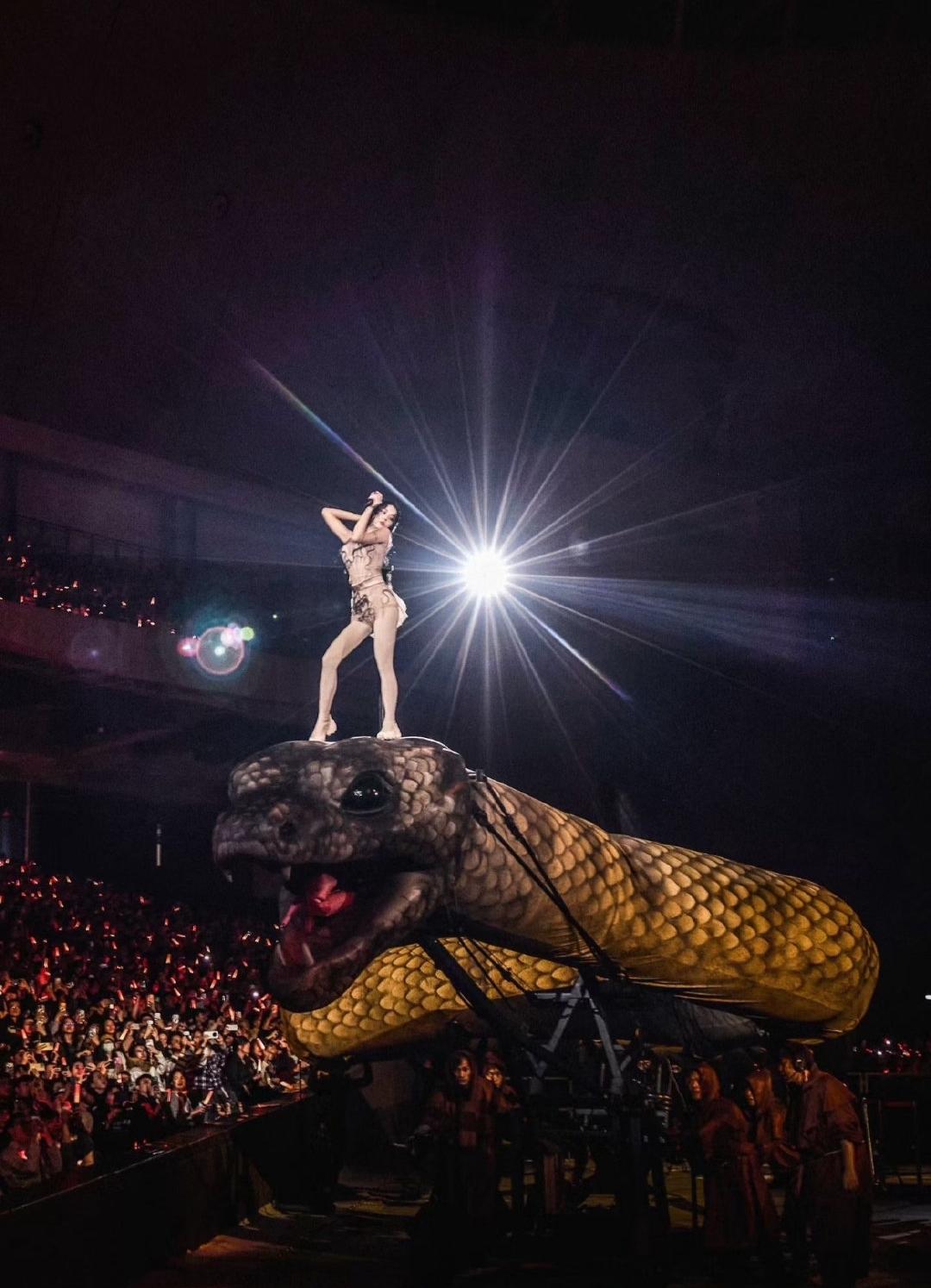 蔡依林演唱会被举报了,好像是观众看蔡依林演唱会的时候,弄了一些几十米长的机械蛇。 踩着蛇脑袋全场跑。 又是大苹果,又是大马,乱七八糟的,特别像是某种西方仪式,担心是吸走观众的气运。 有一说一,网友确实是想多了,我个人感觉没那么邪乎。 不过蔡依林也是,唱歌就好好唱歌,弄这么超前又抽象的元素,观众理解不了,那也不能怪观众啊。