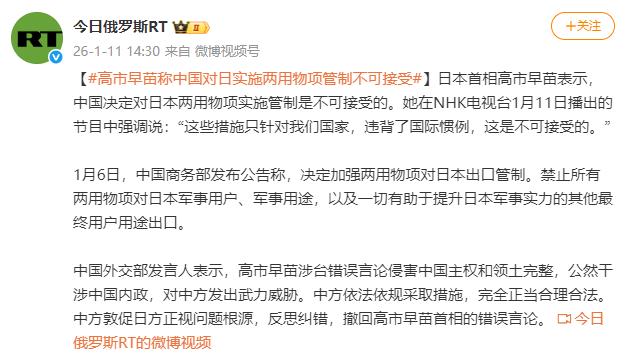 五常已做选择! 进入2026年后,中日矛盾仍在升级。现在的最新情况是:五常大国全都已经做了选择,高市早苗送中国4个字。而日本网民则在感叹:16年前的噩梦重现。   1月6日,中国商务部依法发布2026年第1号公告,明确加强两用物项对日本的出口管制,涵盖9个大类上千项物资,严禁这些可军民两用的关键物品流向日本军事领域。   这一举措有理有据,既是为维护国家安全和利益,也是对日本近期一系列危险动作的必要回应。此前,高市早苗多次发表涉台错误言论,公然干涉中国内政,甚至发出武力威胁,其行为已经触碰中国核心利益红线,违背战后国际秩序和国际惯例。   令人匪夷所思的是,1月11日高市早苗在NHK节目中非但不反思自身过错,反而倒打一耙,声称中方措施“只针对日本,违背国际惯例”,叫嚣“不可接受”。   这种毫无廉耻的表态,简直是本末倒置。中方的管制措施完全符合中国法律和国际义务,针对的只是日本不断膨胀的军事野心,保护的是地区和平稳定,何来“违背惯例”之说?   日本近年来持续增加防卫预算,2026财年预算较2018年增幅达70%,还推行“寓军于民”策略,让民用企业深度参与军工生产,中方的管控正是为了遏制日本军国主义死灰复燃,于情于理都无可指责。   更关键的是,高市早苗寄望的外部支持早已化为泡影,五常的选择已经给出明确答案。   法国总统马克龙公开表态,G7不应成为反华团体,直接打破了日本寻求集体支持的幻想;俄罗斯紧接着扩大禁运清单,将日本急需的半导体材料纳入其中,给日本供应链再添一击;美国则撤销了对华无人机的管制提案,释放出对华示好的信号,与日本期待的强硬立场背道而驰;英国则选择沉默观望,不愿卷入这场争端。   五大国的态度已然说明,国际社会不会纵容日本挑战战后秩序,即便是“最亲密的盟友”美国也不愿为日本的利益得罪中国,高市早苗的强硬路线根本行不通。   面对中方的正当反制,日本的应对可谓捉襟见肘。他们仓促启动深海稀土试采计划,但6000米深海的开采技术难度极大,成本高得惊人,短期内根本无法替代中国的供应。   日本企业更是陷入恐慌,多家公司紧急盘点库存,甚至考虑终止现有稀土供应合同。有机构测算,若管制持续3个月,日本经济损失可能达6600亿日元,GDP或将下滑1.3%至3.2%,数十万个就业岗位面临风险。   走投无路的高市早苗甚至计划提前举行大选,试图通过政治豪赌巩固地位,完全不顾及民众的切身利益。   日本民众显然已经看清局势,不少人在社交媒体感慨“16年前的噩梦重现”,回忆起2010年稀土禁运给日本产业带来的重创。如今日本对中国关键物资的依赖并未根本改变,重稀土依赖度仍超80%,半导体等支柱产业更是离不开中国供应链。   中方的反制措施只是一个开始,我们手中掌握的管控手段远不止这上千项物资。   高市早苗政府若继续执迷不悟,不愿正视问题根源、撤回收错误言论,反而一味挑衅对抗,只会让日本陷入更深的困境。