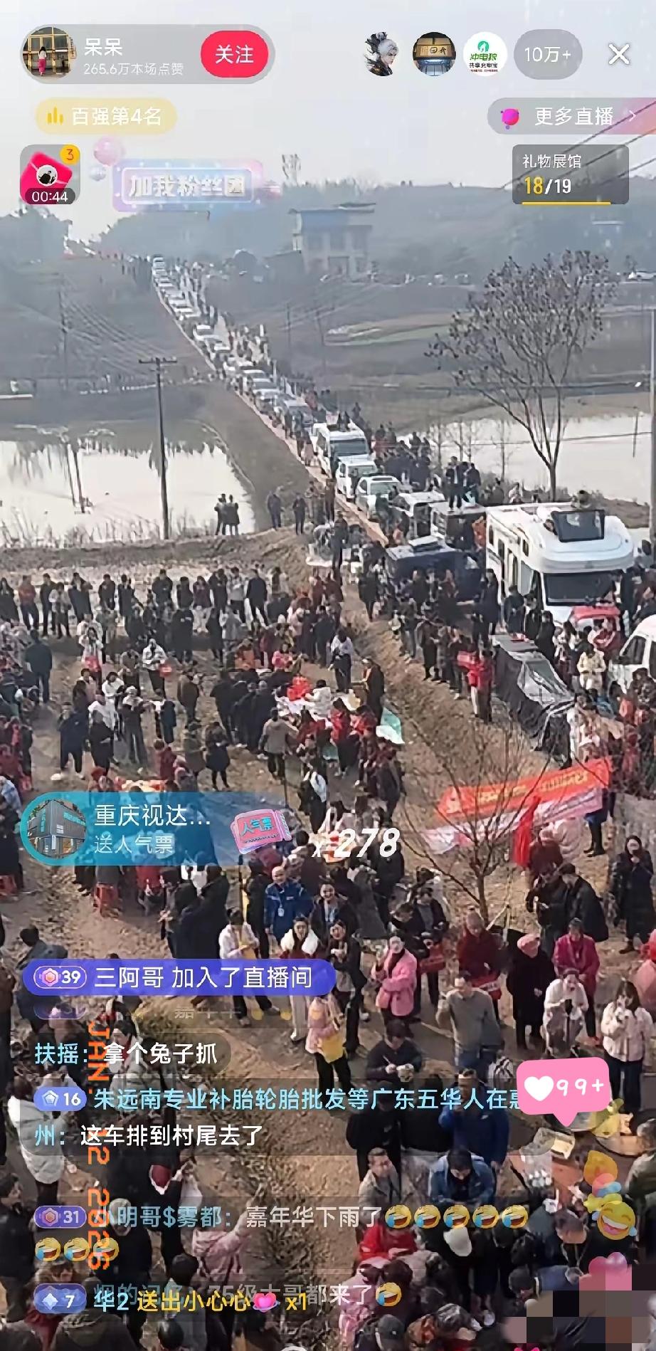 这时代莫名其妙就能瞬间暴富,呆呆今天直播人气一直维持10万以上,虽然没有带货,但是打赏一直不断,粉丝也从昨天的20万涨到了50万,10万以上的直播不是普通网红能拥有的,后期变现的潜力巨大,有些几百万粉丝的大网红都直播都未曾上过这么高的人气。 但说“躺着挣钱”真的太片面了,呆呆的爆火根本不是命运偶然,而是戳中了大家对真诚的渴望。 她只是想帮老父亲杀猪、想在村里扬眉吐气,一条直白的求助视频,没有剧本没有炒作,这份纯粹刚好撞进了满是套路的网络里。 上千网友驱车赴约,合川文旅连夜下场助力,本质是大家在为这份不掺假的烟火气买单。 所谓的“泼天富贵”,从来不是天上掉的,而是你刚好满足了大众未被言说的情绪需求。 那些觉得“不用打拼”的人,没看到爆火背后是无数人对真诚的共鸣。 你觉得这种“真诚出圈”的热度,能维持多久?