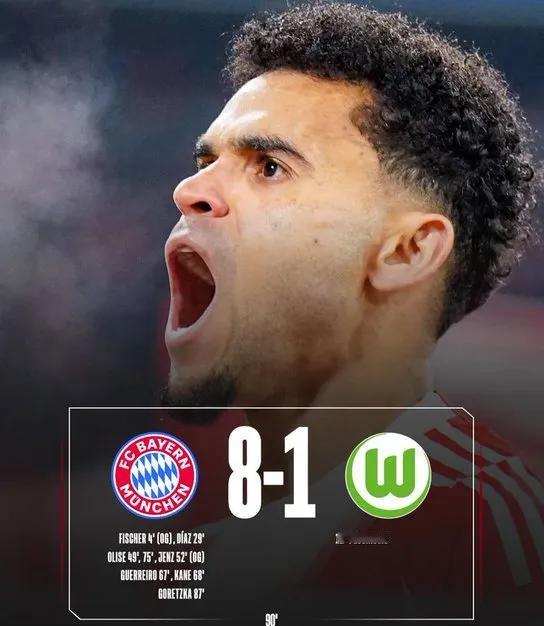 你还敢还手? 当终场哨声响起时,记分牌上的数字让所有人都愣住了8-1,拜仁慕尼黑用一场近乎疯狂的胜利撕碎了沃尔夫斯堡的防线。 谁能想到,开场10分钟还能扳平比分的狼堡,会在接下来的80分钟里被彻底打懵。 比赛第12分钟,沃尔夫斯堡球员刚刚庆祝完扳平比分的进球,安联球场的欢呼声还没散尽,拜仁的进攻浪潮就已席卷而来。 穆勒接基米希传中头球破门,紧接着萨内、格纳布里先后在边路撕开缺口,不到半场比分就变成4-1。 狼堡球员站在场上,眼神里的斗志一点点被瓦解,这场胜利不是偶然,翻开本赛季德甲积分榜,拜仁16轮过后领先第二名11分,净胜球更是达到惊人的37个。 球队板凳席上坐着穆西亚拉、科曼这样的顶级攻击手,就连替补出场的小将都能制造威胁。 这种阵容深度,让其他球队望尘莫及,老球迷应该记得,2015年拜仁也曾8-0血洗汉堡,当时莱万多夫斯基9分钟连进5球的神迹至今让人津津乐道。 八年过去,这支球队的进攻火力丝毫未减,反而在弗里克、纳格尔斯曼等教练的打磨下更加体系化。 进攻端多点开花,防守端稳如磐石,这样的拜仁确实让对手感到绝望,为什么德甲总是拜仁一家独大?看看他们的青训营就能明白,穆西亚拉、穆科科等新星不断涌现;再看看转会市场上的投入,每年稳定的资金支持让球队总能留住核心球员。 反观其他球队,多特蒙德、莱比锡虽然偶尔能制造惊喜,却始终缺乏持续抗衡的底气。 我觉得这场8-1或许会成为德甲格局的一面镜子,当拜仁把阵容优势转化为场均3球的进攻效率时,其他球队需要思考的不仅是战术层面的应对,更是如何构建可持续的竞争力。 毕竟,联赛的精彩程度,从来不是靠单一球队的独角戏撑起来的,当安联球场的记分牌定格在8-1,替补席上的拜仁球员相拥庆祝,而狼堡门将则蹲在地上久久不愿起身。 这场比赛留下的不只是悬殊的比分,更是德甲强弱差距的真实写照,或许对其他球队而言,这样的惨败既是耻辱,也是重新出发的起点。