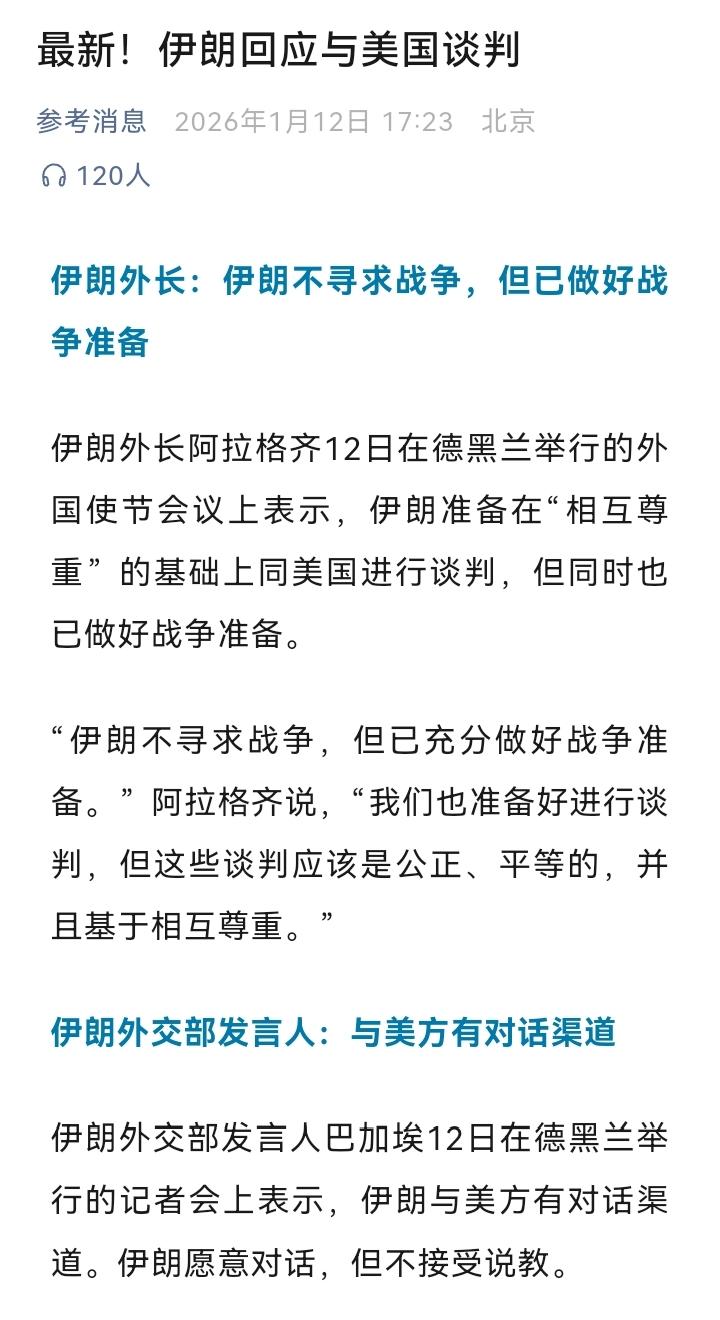 我敢说,伊朗这次又要栽在美国的手里!显然他们是没有吸取上次挨导弹袭击的教训,现在又要和美国开始谈判。更离谱的是,伊朗明明知道这次他们内部的民众动乱背后有美国和以色列的影子,他们依然觍着脸和美国去谈判。只能说,伊朗吃的苦头还不够多。 从这次伊朗外长的表态来看,他们以前嘴巴上还算强硬,现在连说话都软了。要知道,美国是只能欺软怕硬的。上次就是一边和美国谈,自己的核设施就挨轰炸了。所以,这次伊朗继续栽跟头已经是必然的了。