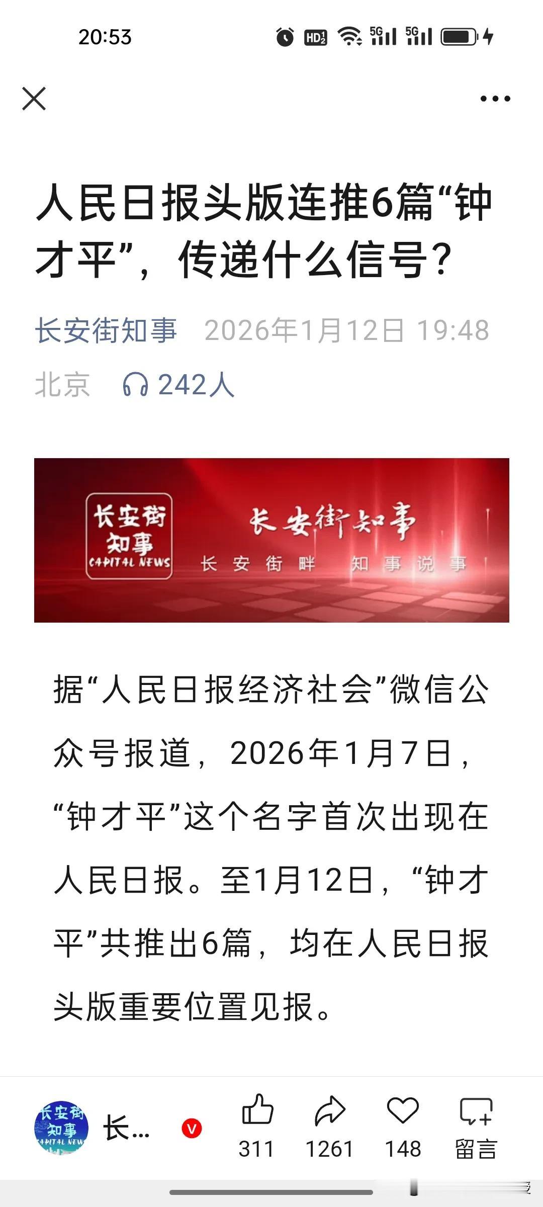 开年人民日报六篇署名钟才平的文章火了! 老百姓读懂这3点心里更有底! 根据《长安街知事》报道,今年开年人民日报头版连推6篇“钟才平”署名文章,从经济发展到民生保障,从对外开放到政策落地,字里行间全是和老百姓息息相关的信号,读懂这三点心里更踏实! 第一,发展不搞“一刀切”,日子能更稳。文章反复强调“因地制宜”,反对盲目跟风搞项目、建“形象工程”,这意味着地方不会再乱折腾,不再增加地方负债,企业经营更稳定,打工人不用怕行业“一哄而上又一哄而散”,稳就业,稳收入是第一大事。 第二,政策聚焦“真民生”,实惠能更多。无论是增加国补扩消费,还是优化营商环境、完善民生项目,打破民生垄断,杜绝燃气供水强制搭售、原料药价格操控等等,减轻民生负担,核心都是让发展成果惠及普通人。未来优质产品和服务会更易获得,基层保障更扎实,老百姓的生活品质能跟着经济发展一起提升。 第三,开放大门越开越大,机会能更广。第六篇文章专门聚焦扩大开放,超大规模中国市场会持续释放潜力,比如三亚封关等,不仅能买到更多全球好货,还能带动更多就业和创业机会,普通人也能借着开放的东风找到新出路,因此我们要敢于把握机会,未雨绸缪。 这六篇文章不是空洞的政策解读,而是给老百姓的“定心丸”和“指南针”。新一年,跟着政策方向走,找准自己的位置,日子只会越来越有奔头!你最期待这些政策带来哪些实际改变?