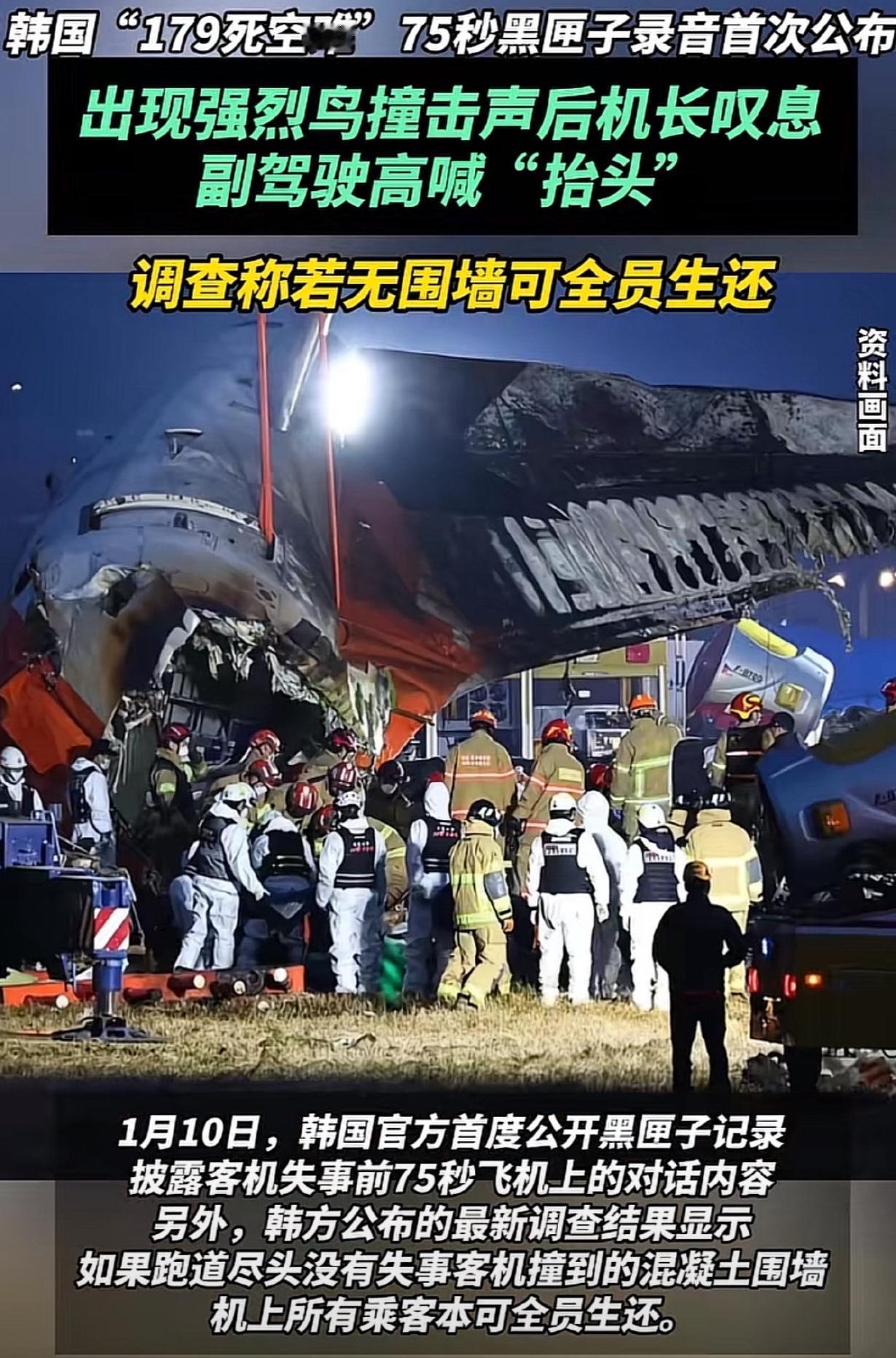 “Mayday”喊破喉咙也没用! 韩国空难75秒录音里的绝望,179人本不该死 韩国空难的黑匣子录音细节曝光,机组拼了命喊“Mayday”,可那堵早该拆的混凝土墙,终究还是成了催命符。 2024年12月29日,济州航空2216号班机遭5万只白眉鸭撞机,机长叹完气,副驾驶喊着“抬头”,飞机还是失控了。机组在黑匣子停录6秒后,三次喊出国际紧急求救信号Mayday,可这声绝望的呼救,没被那堵有致命隐患的墙“听见”。 模拟调查明明白白显示,没这堵墙,飞机滑770米就停,179人全能活!更离谱的是,这墙的问题早被发现,主管部门却装瞎不整改。现在调查只查44个基层人员,高层责任压根没碰,遇难者家属等了一年,连句准话都没有。 Mayday是飞行员最后的希望,可人为的失职,让这声求救成了空谈,这锅到底该谁背?