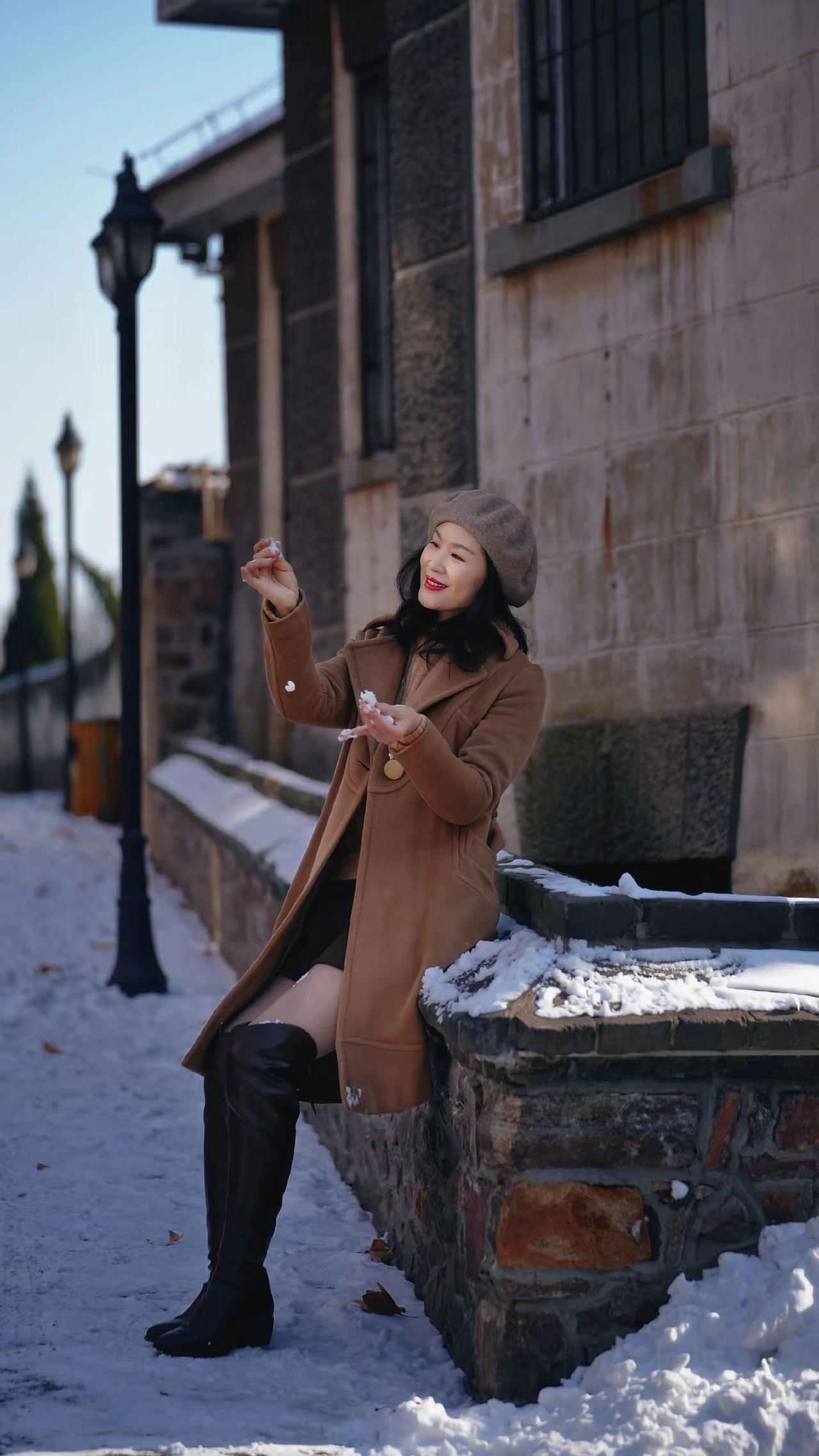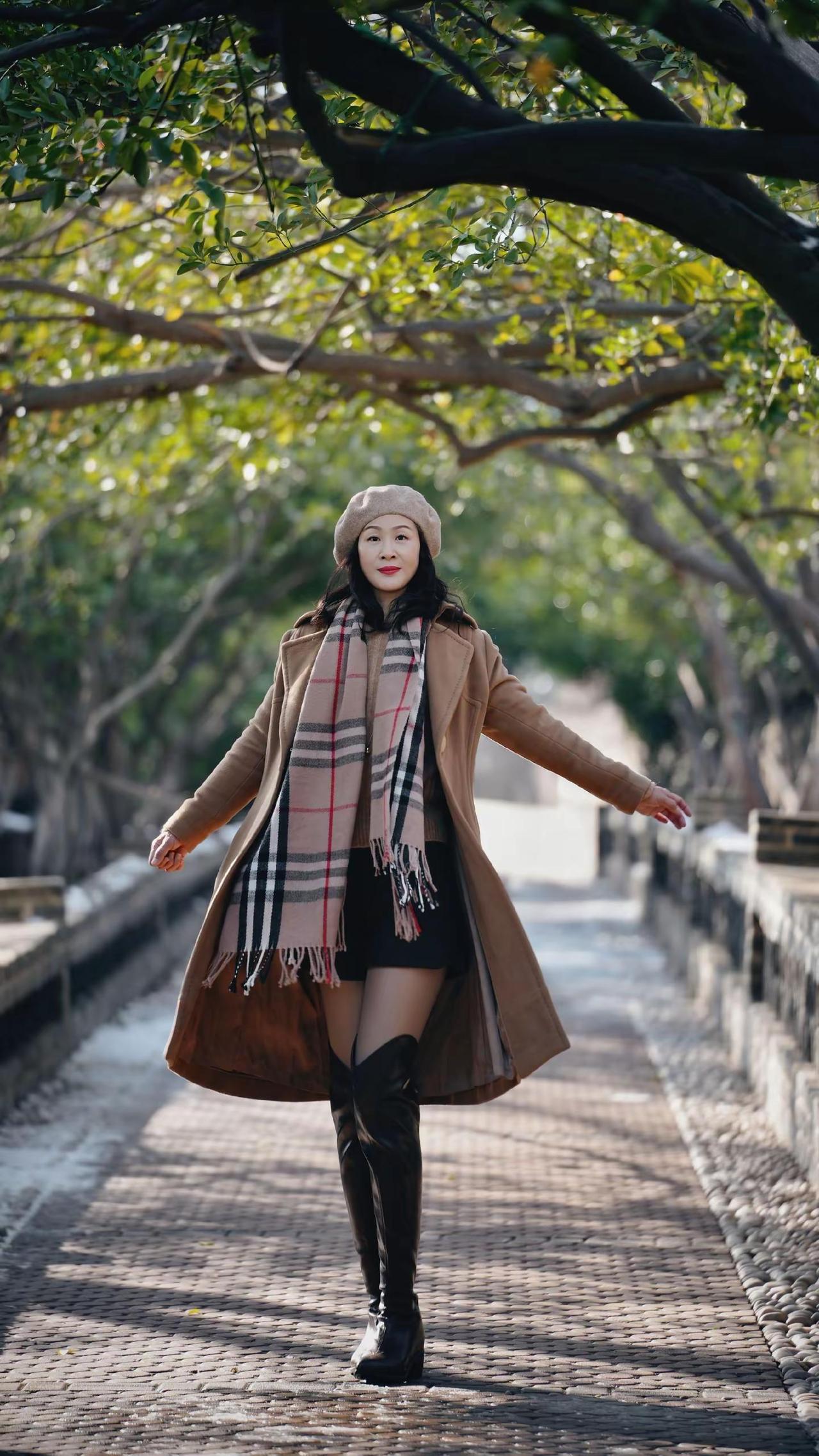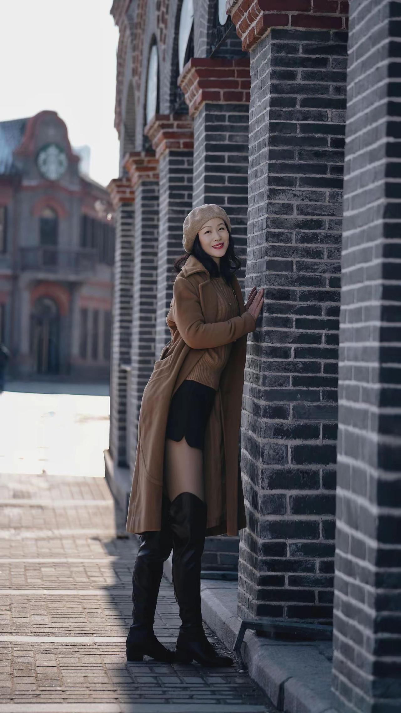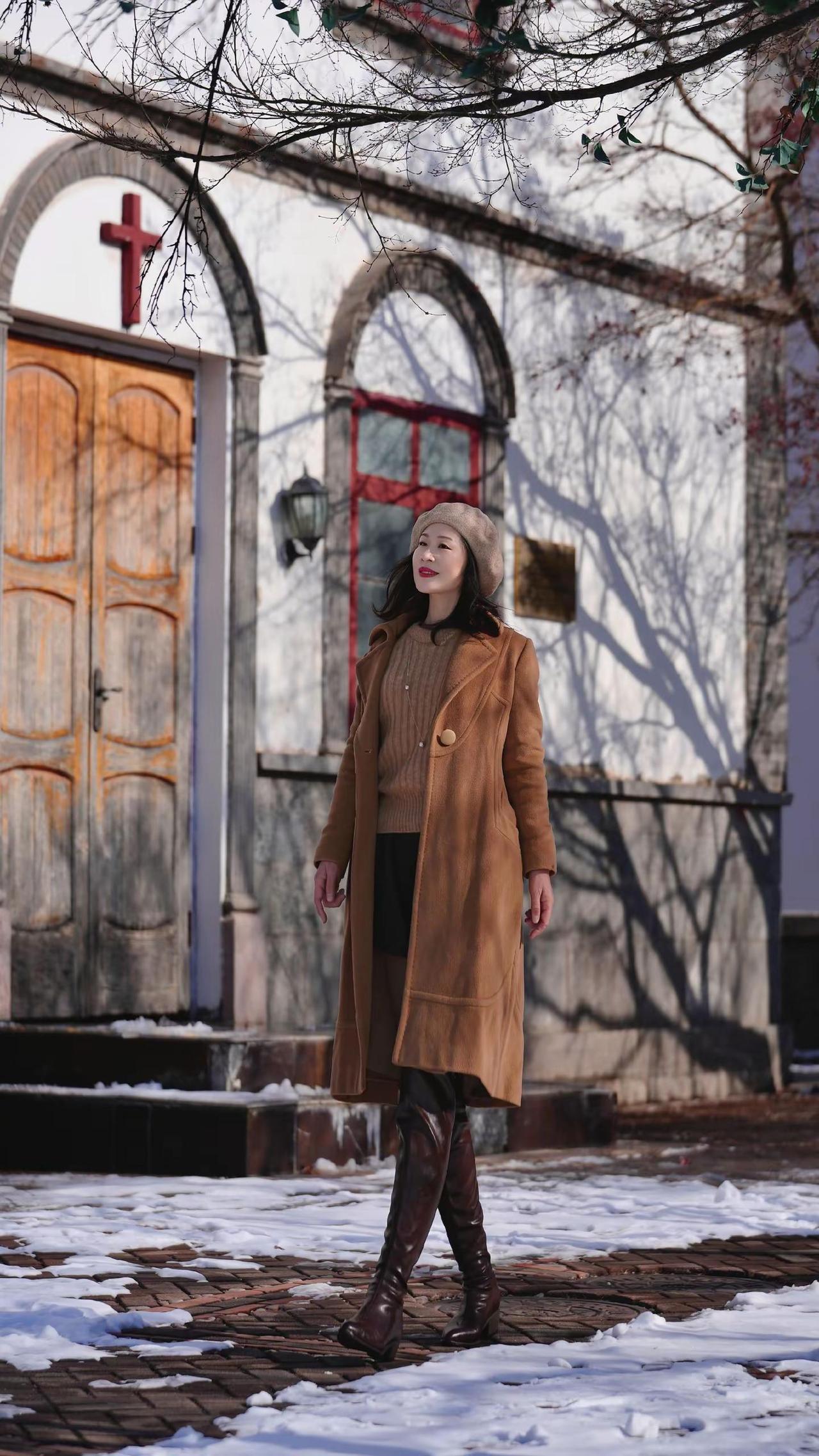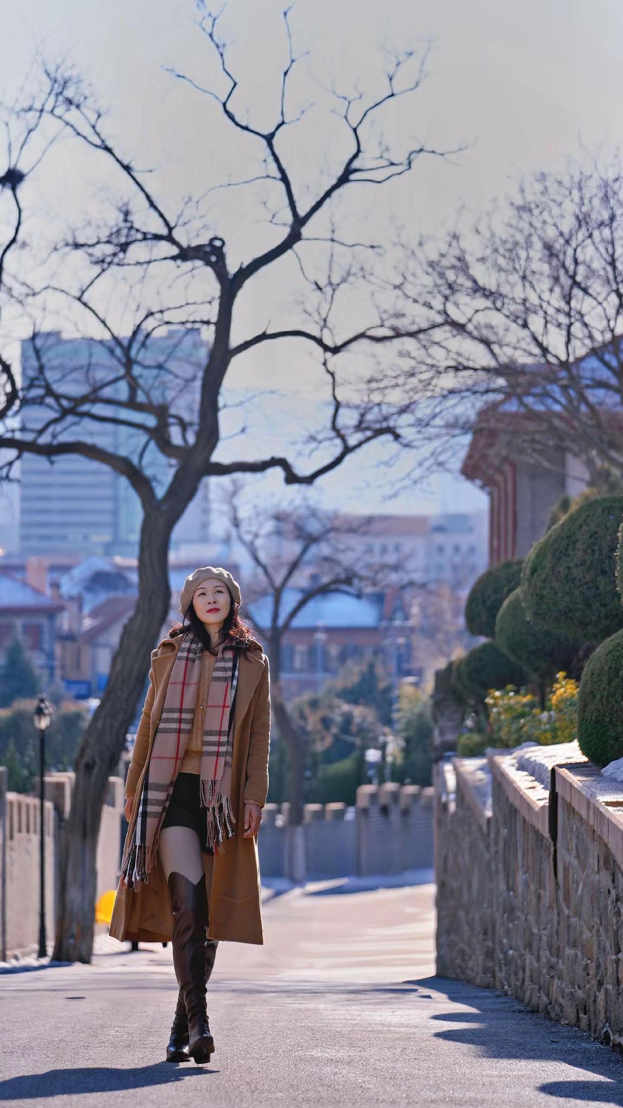 🎉在老城邂逅冬日浪漫!🧣焦糖色大衣与红瓦白墙太配啦~🍂阳光穿过树枝洒下温柔滤镜✨这个街角机位你get了吗?