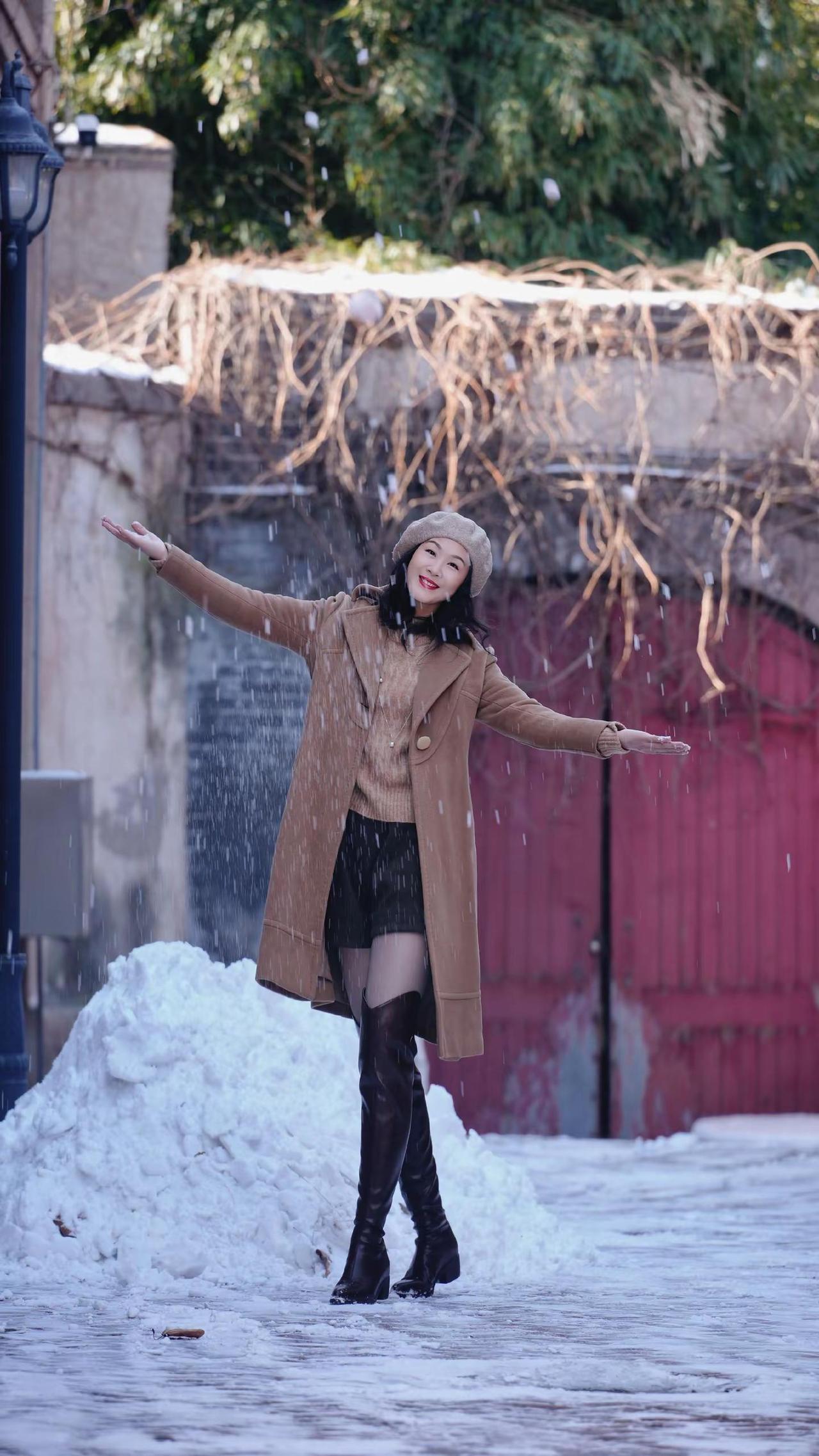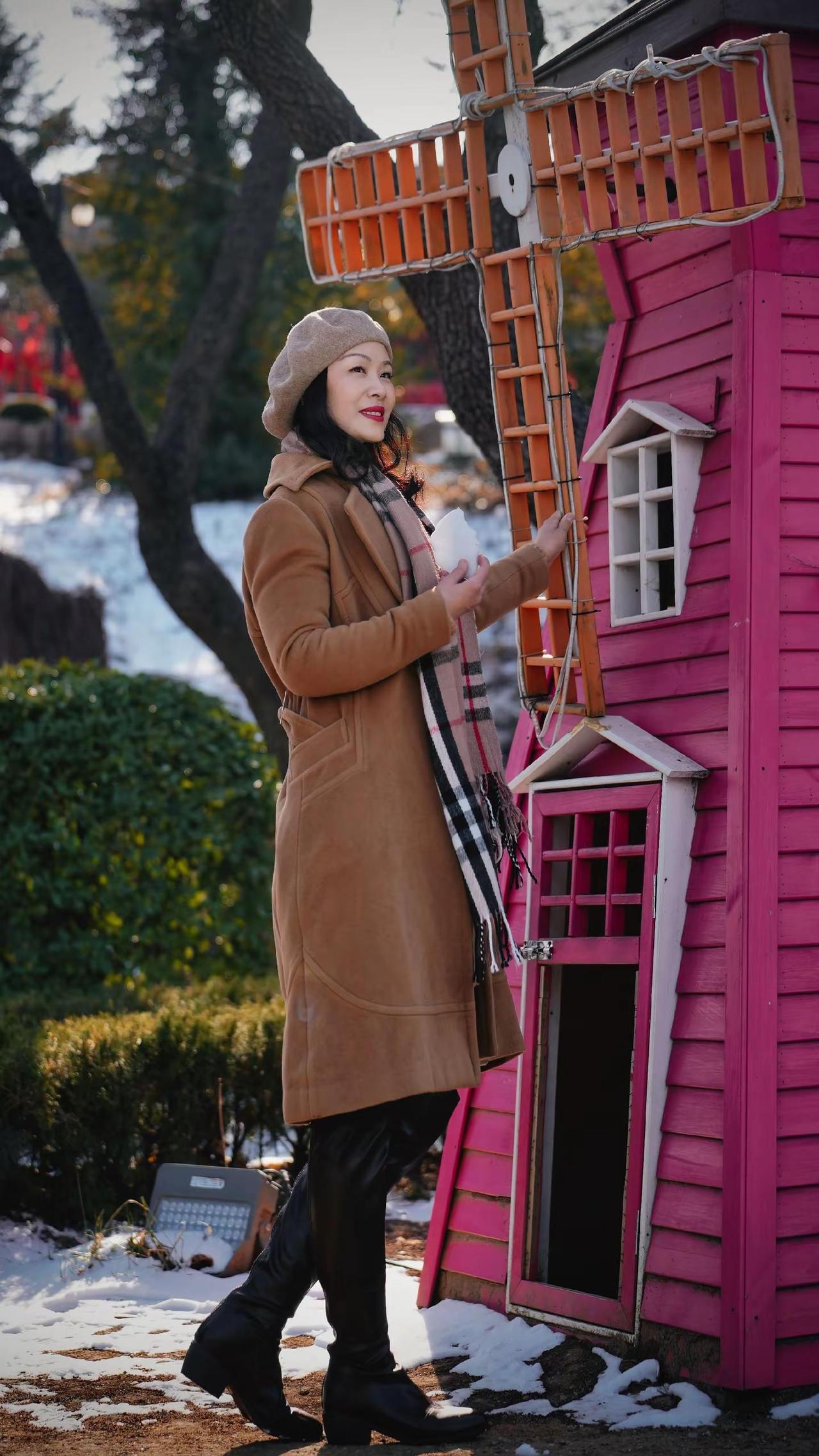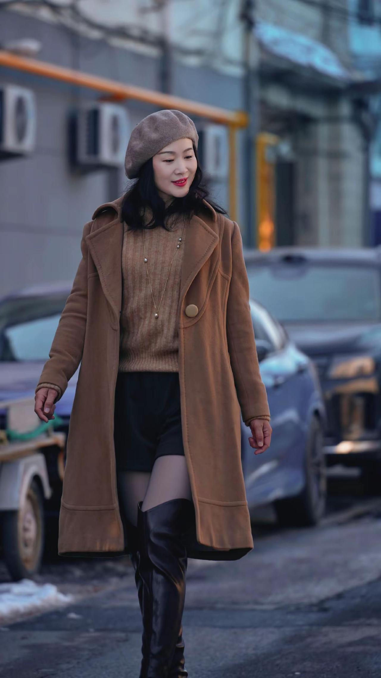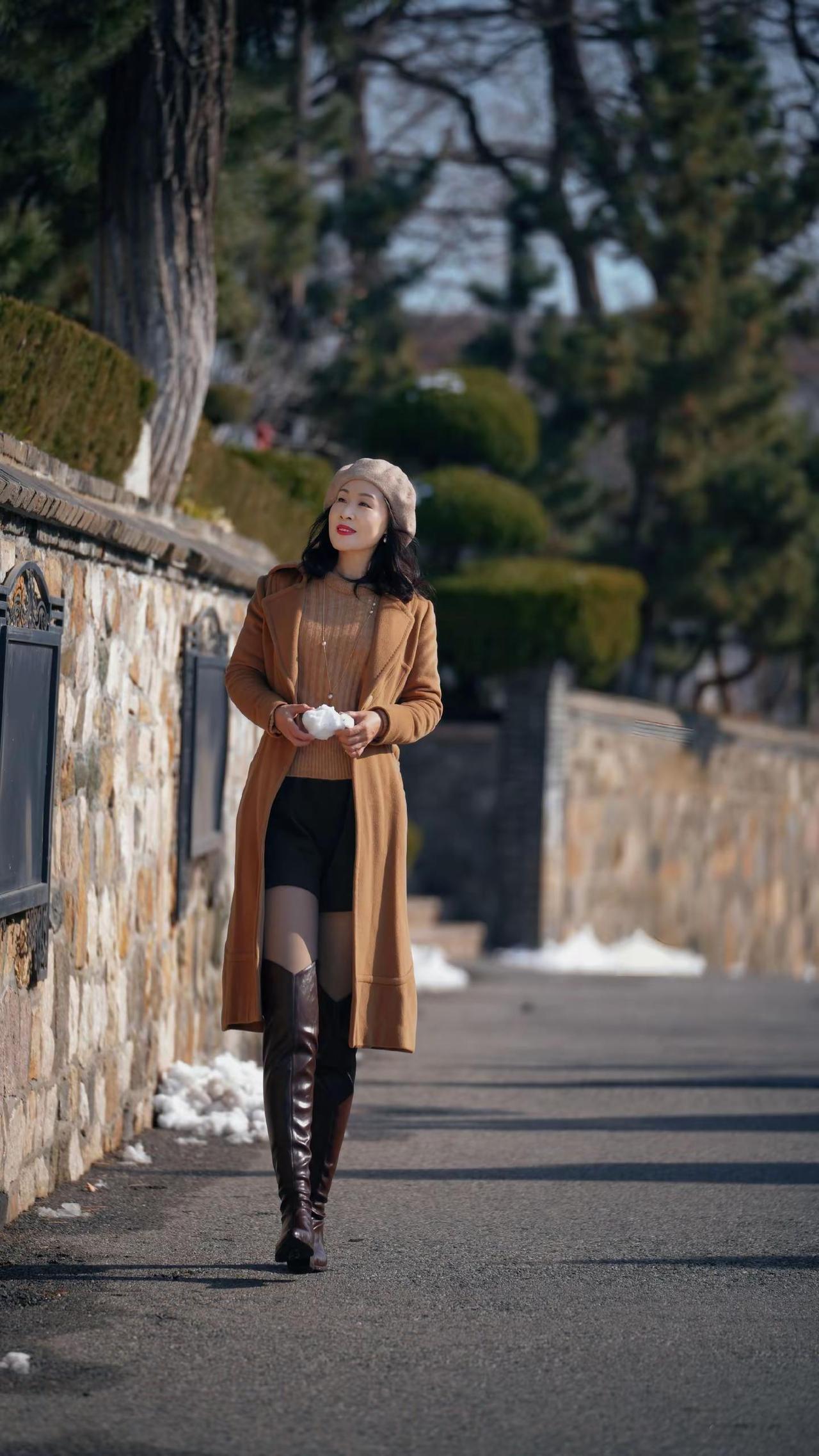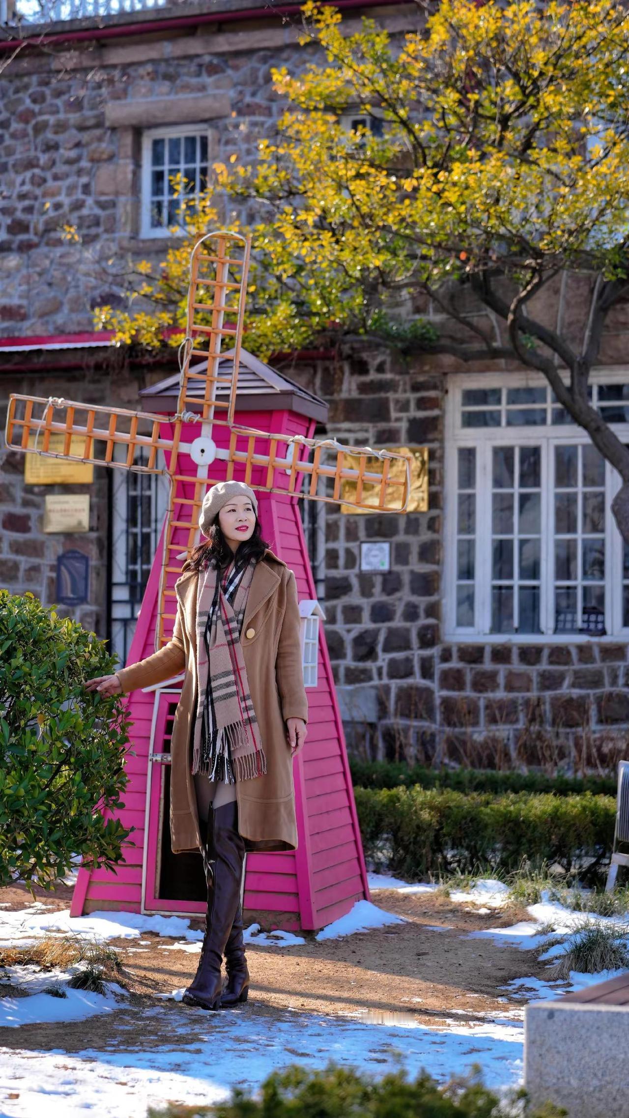 🎉在老城邂逅冬日浪漫!🧣焦糖色大衣与红瓦白墙太配啦~🍂阳光穿过树枝洒下温柔滤镜✨这个街角机位你get了吗?