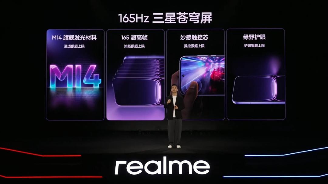 真我Neo8屏幕沟通会之「全方位狠超iPhone17 Pro Max的最护眼三星屏」 - 通透,狠超上限 三星M14发光材料,103% P3,3800nit强光亮度,165Hz(功耗小于144Hz),超声波指纹,晶铠玻璃,大R角视觉四等边, - 流畅,狠超上限 和平精英 三角洲等五大枪战游戏支持原生165Hz 超30款游戏支持原生165Hz 无畏契约、王者荣耀支持原生144Hz 大型开放世界游戏支持120帧+1.5K - 操控,狠超上限 妙感触控芯,触显同步,3800Hz瞬时触控采样率,10指360Hz触控采样率。 - 护眼,全面看齐行业领先标准 绿野护眼,全亮度DC调光,莱茵无频闪认证,AI护眼。 新机下周发布。