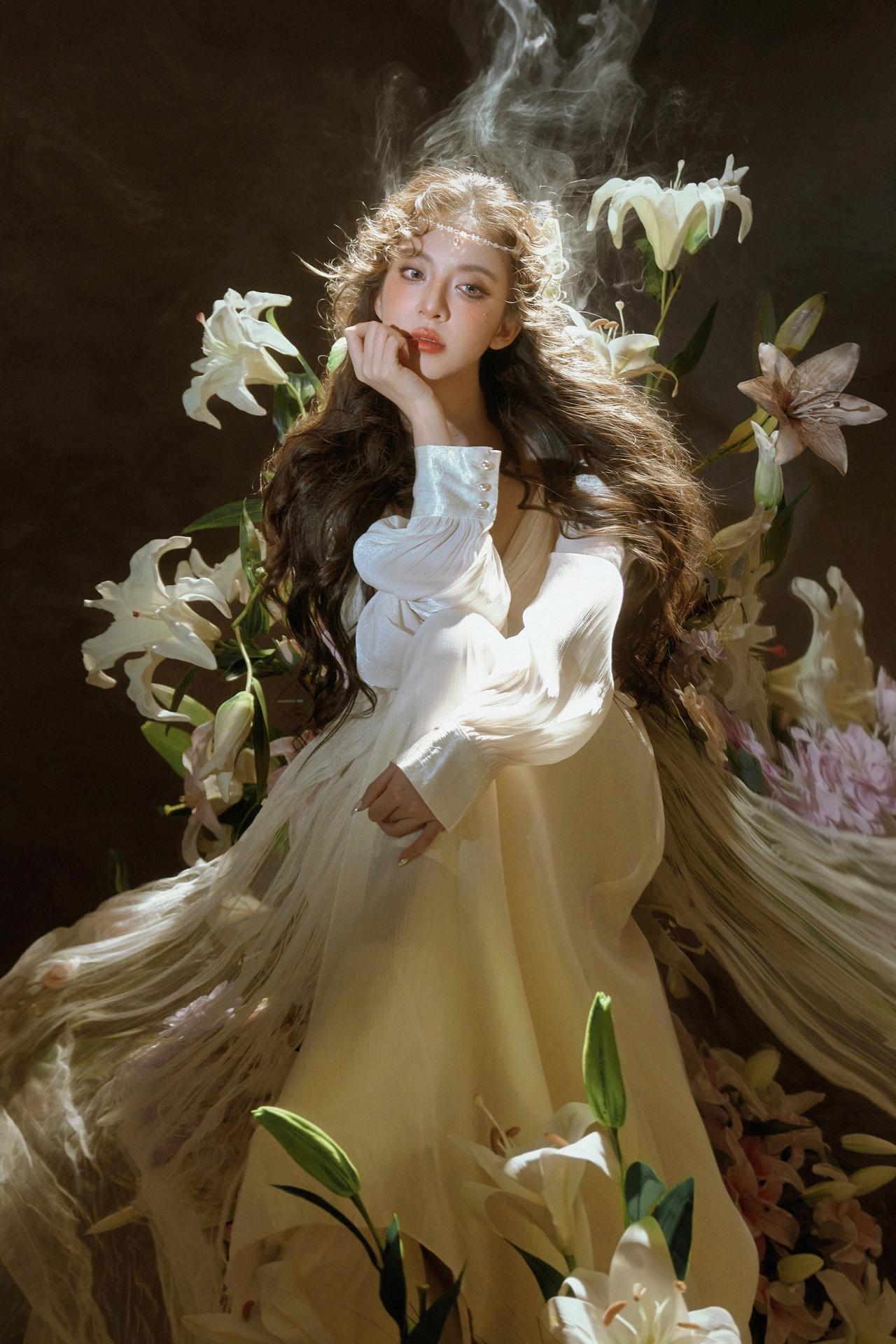 这组婚纱写真以“暗调光影+花艺叙事”为核心,首图蜡烛侧光塑造的轮廓感堪称点睛之笔