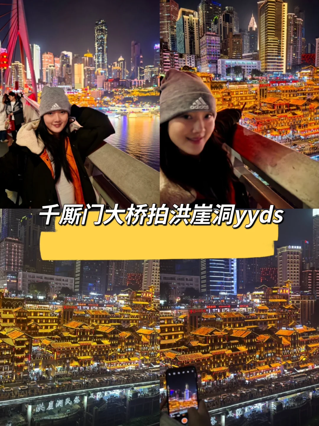 1⃣ 洪崖洞对面大剧院江滩——导航"大剧院停车场",走到江边,拍千厮门大桥+洪崖洞全景倒影,夜景超美!