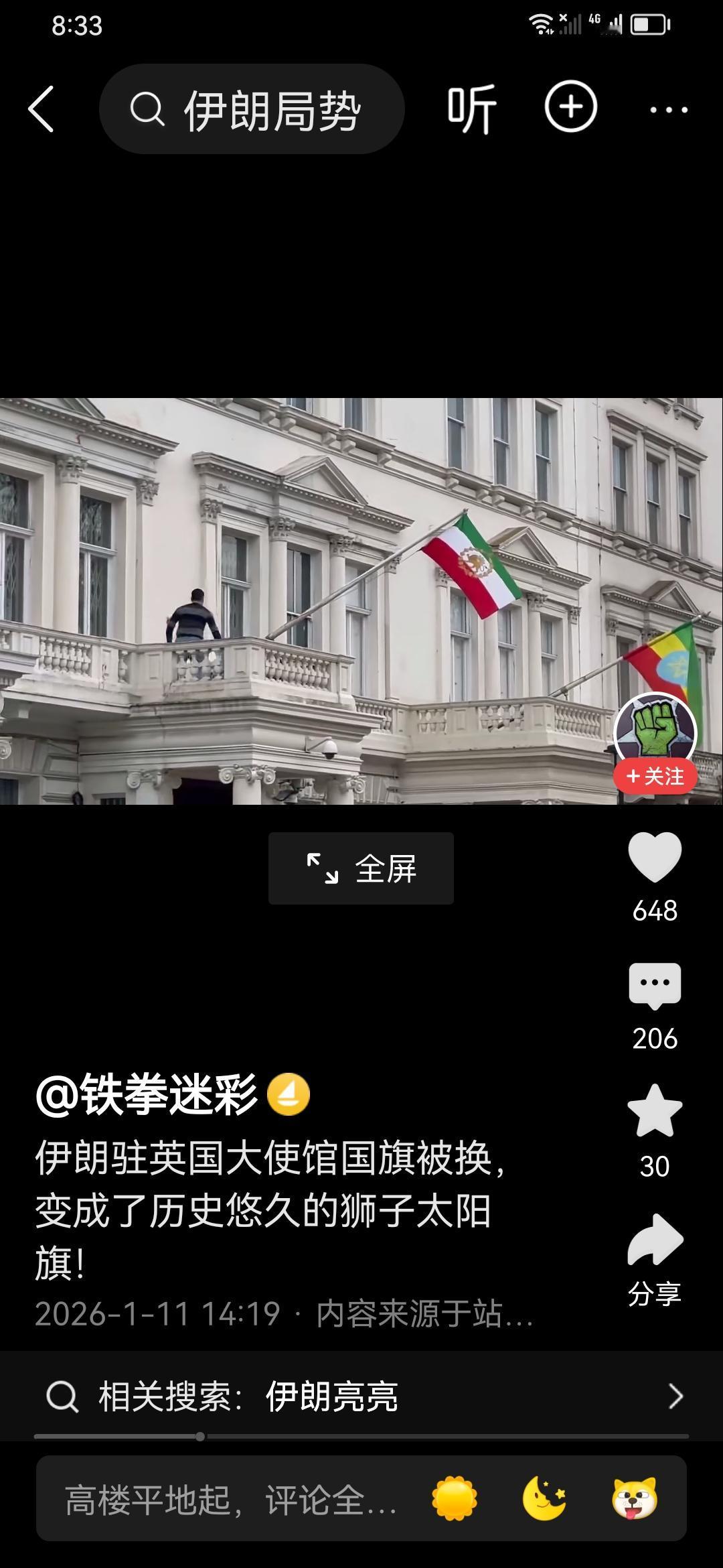 伊朗街头发生激烈枪战,同时英国大使馆升起巴列维王旗。 里应外合的心理战交锋中。 川普磨刀霍霍,这次不知那个要栽了。