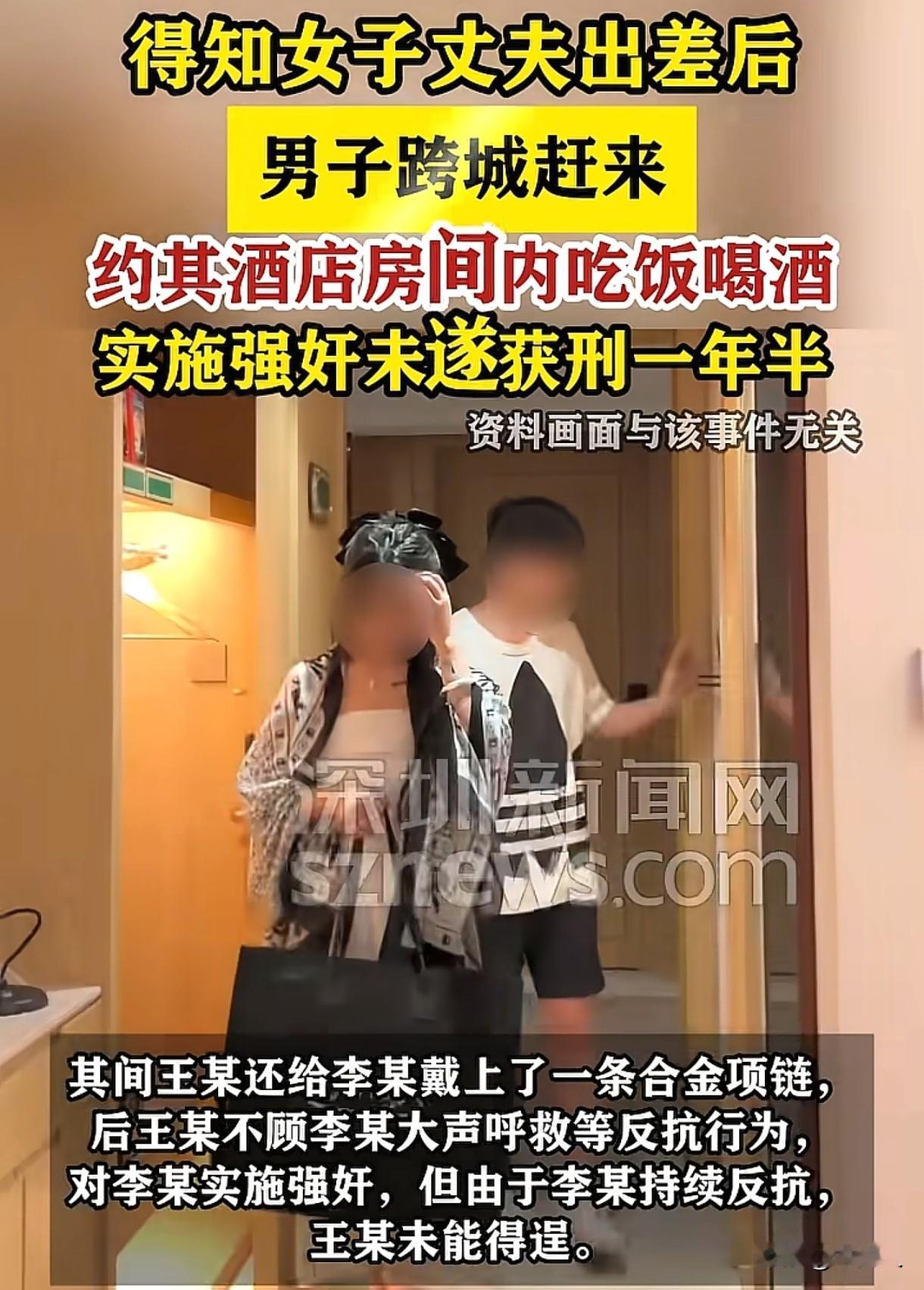 湖北咸宁,男子得知女子的丈夫出差后,赶到女子所在的城市,将女子约到酒店,不顾女子反对,欲强行跟女子发生关系,女子反抗并报警,男子并未得逞,可结果还是悲剧了。 男子王某和李女士因为工作原因,加了好友,平日里偶尔也会聊聊天。 2024年10月的一天,王某和李女士聊天时,得知李女士的丈夫去了外地出差。 这原本只是一个再平常不过的消息,可王某却动了歪心思,他提出想要去找李女士玩,李女士直接拒绝了他。 可王某并未就此罢休,而是于当天下午,他竟然开车从武汉出发,一路奔波赶到了李女士家所在的县城。 到了之后,他迫不及待地给李女士发去了酒店地址,约李女士出来见面。 盛情难却,李女士只好赶到了王某所在的酒店。 见到李女士后,王某送了一条合金项链给她,并亲手给她戴上了。 李女士虽然感觉奇怪,但是也没有当场拒绝,两人聊了一会天,王某点了外卖和啤酒,拉着李女士陪他吃饭喝酒。 李女士想着既然来了,也不好扫兴,就陪着王某吃了起来,两人各自喝了2瓶啤酒。 吃饱喝足后,李女士本以为这次见面也就结束了,可没想到,噩梦才刚刚开始。 王某突然强行将李女士拖到床上,试图跟她发生关系。 李女士被吓坏了,她怎么也没想到王某会做出这样的事,她大声呼救,手脚也不停地奋力反抗,希望能挣脱王某的魔掌。 王某根本不顾她的反抗,继续实施他的暴行,激烈反抗中,李女士的手臂、胸部和脖颈等部位受了伤。 就在她快崩溃时,手机铃声突然响起,王某听到铃声后,放开了李女士,让她接听电话。 电话是李女士母亲打来的,她挂断母亲电话后,趁机拨打了报警电话。 王某见状,想要阻止李女士报警,可已经来不及了。 一怒之下,他竟然拍下了李女士下半身没穿衣裤的照片,李女士发现后,要求王某删除。 王某虽然删掉了照片,但还不死心,他又给李女士转了200元,要求李女士收下后才能离开。 李女士拒绝收款,并告诉王某自己会报警,离开房间后,她将王某送的项链取下,放在酒店前台,让工作人员转交给王某。 事发后,李女士报了警。 王某因犯强奸罪(未遂)被判处有期徒刑1年6个月。 一审判决后,王某不服,提起了上诉,称自己只是猥亵了李女士,自己的行为并不是强奸。 从法律角度来说,该如何看待王某的行为呢? 1、王某明知李女士有家庭,还约她去酒店,并欲与她发生点什么,这种行为违背了公序良俗,理应受到谴责。 《民法典》第8条规定:民事主体从事民事活动,不得违反法律,不得违背公序良俗。 王某和李女士因工作关系,双方互相加了好友,可他得知李女士的丈夫去了外地出差后,赶到李女士所在的县城,并将人约到酒店,这种行为是不道德的。 在酒店里,他先是送项链、吃饭喝酒,营造出一种友好的氛围,然后突然露出真面目,试图强行与李女士发生关系,这种行为令人发指。 也有人说既然李女士不愿意,为何要单独去酒店跟王某见面,并吃饭喝酒呢? 夫妻之间有相互忠实的义务,李女士作为已婚女士,应当跟异性保持适当的距离,双方可以约在酒店大厅见面,或者其他公共场所,而非酒店房间,这一点她确实也做得不妥。 2、王某的行为属于强奸还是猥亵呢? 《刑法》第236条规定:以暴力、胁迫或者其他手段强奸妇女的,处三年以上十年以下有期徒刑。 王某使用暴力手段,强行将李女士拖到床上,试图与她发生关系,这明显符合“以暴力手段强奸妇女”的规定。 由于李女士的奋力反抗,王某最终没有得逞,但这并不影响他构成强奸罪(未遂)。 《刑法》第23条规定:已经着手实行犯罪,由于犯罪分子意志以外的原因而未得逞的,是犯罪未遂。对于未遂犯,可以比照既遂犯从轻或者减轻处罚。 王某已经着手实施强奸行为,只是因为李女士的反抗和报警等意志以外的原因而未得逞,所以构成强奸罪(未遂)。 《刑法》第237条规定:以暴力、胁迫或者其他方法强制猥亵他人或者侮辱妇女的,处五年以下有期徒刑或者拘役。 猥亵罪主要强调的是对他人身体隐私部位的侵犯或者侮辱行为,其主观故意和行为方式与强奸罪有明显的区别。 法院认为王某得知李女士的丈夫出差后,从武汉赶到李女士家附近,将人约到酒店,事先服用药物,欲强行跟李女士发生关系,因李女士反抗和多次报警后并且得逞。 王某的行为构成强奸未遂,而非猥亵罪。 二审法院驳回了王某的上诉,维持原判。 男女交往,应当自尊自爱,不违背公序良俗,不介入他人的家庭,尊重他人的意愿和感受,友好来往。 关注@木头人 ,从法律角度看世界,感受不一样的人情冷暖。