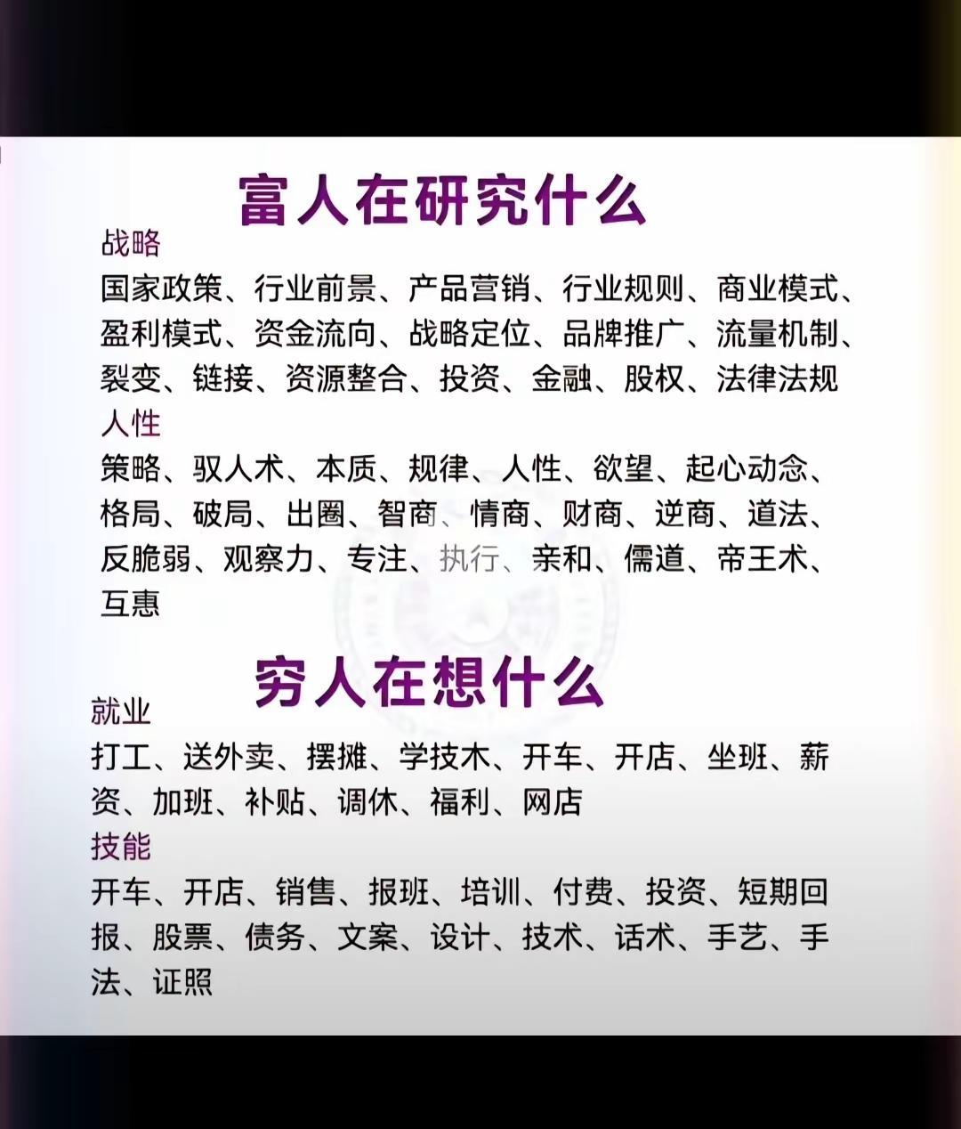 富人在研究什么,穷人在想什么正能量 每天学习一点点 悟人生之道 涨知识
